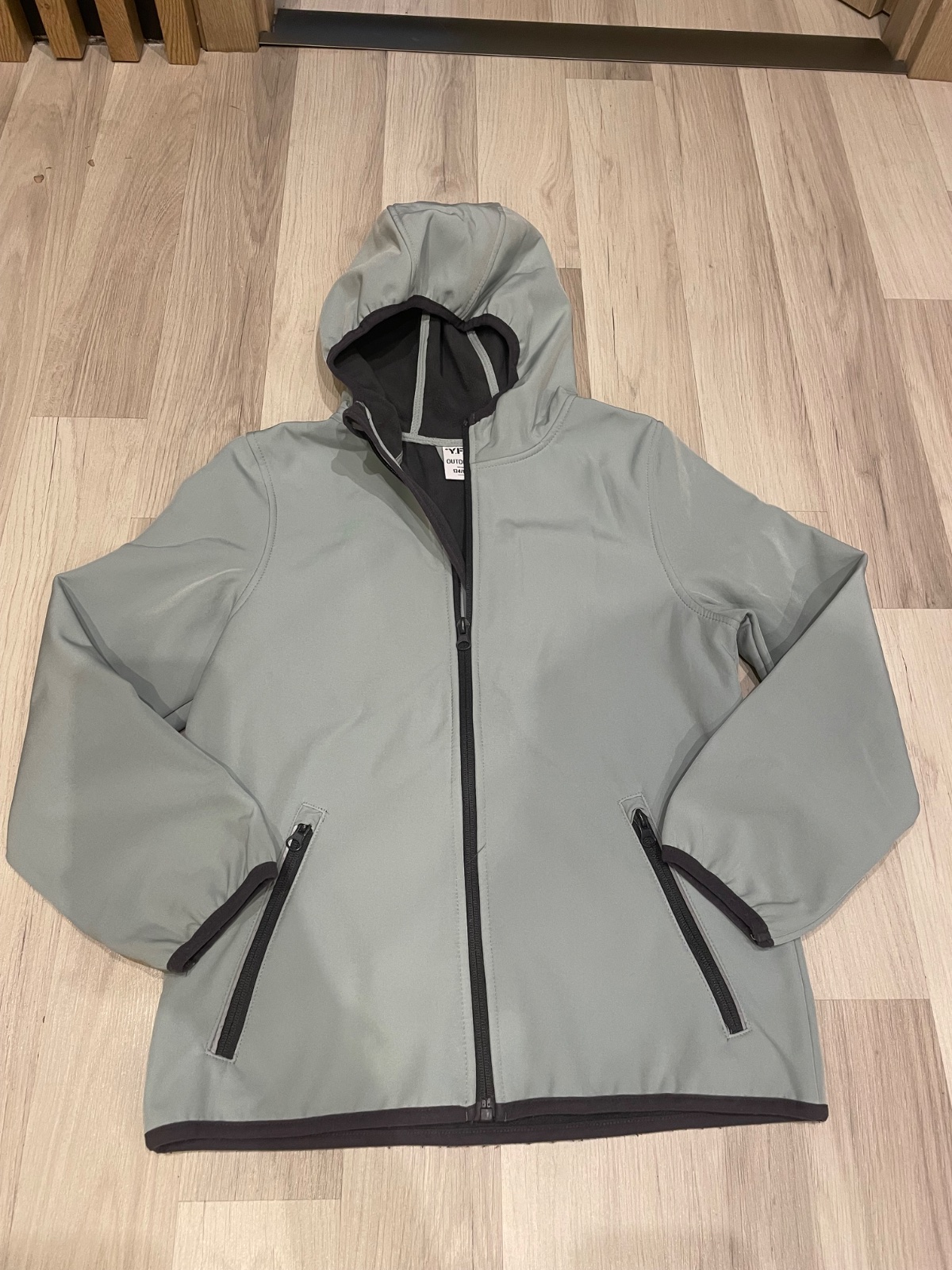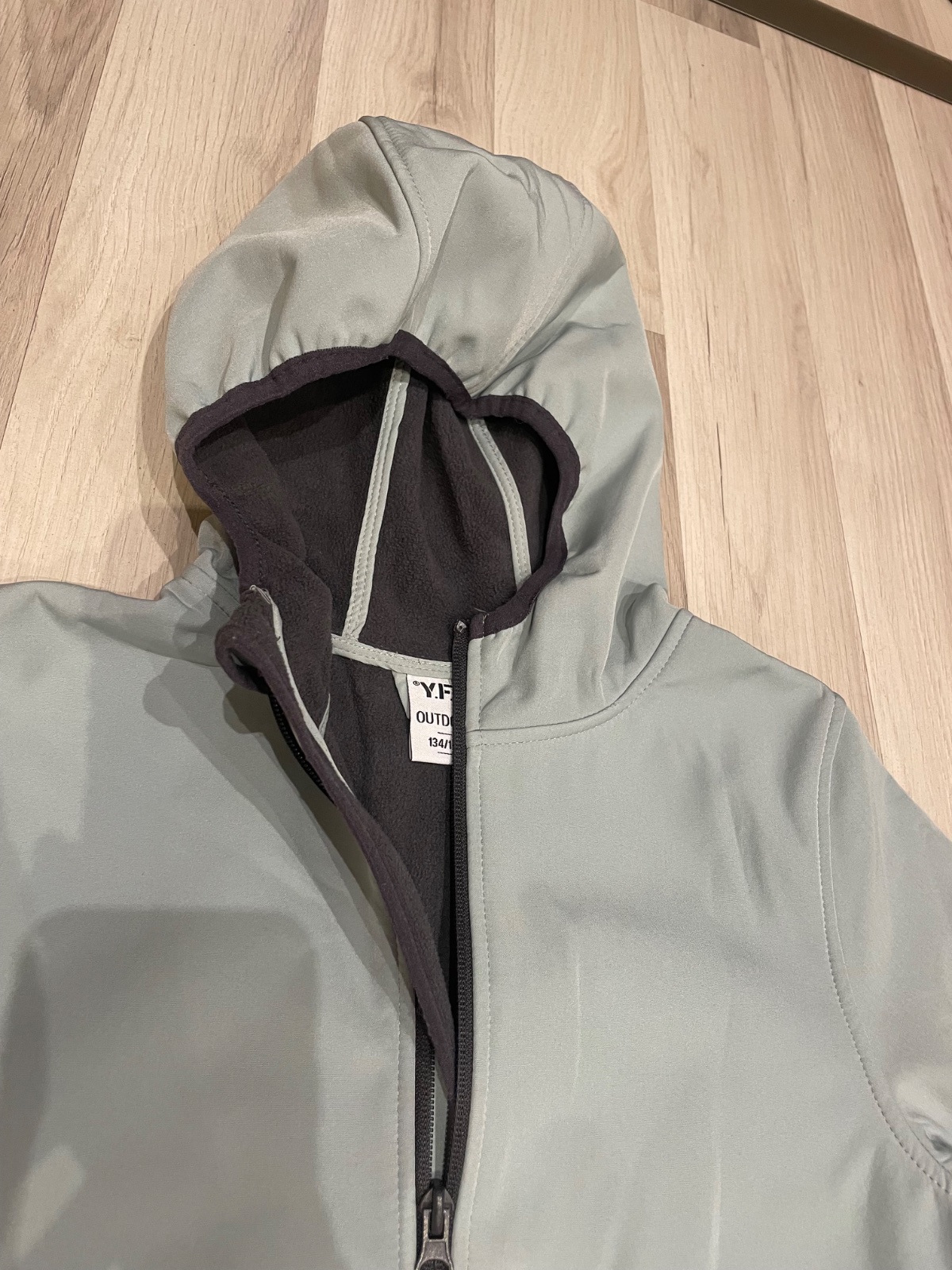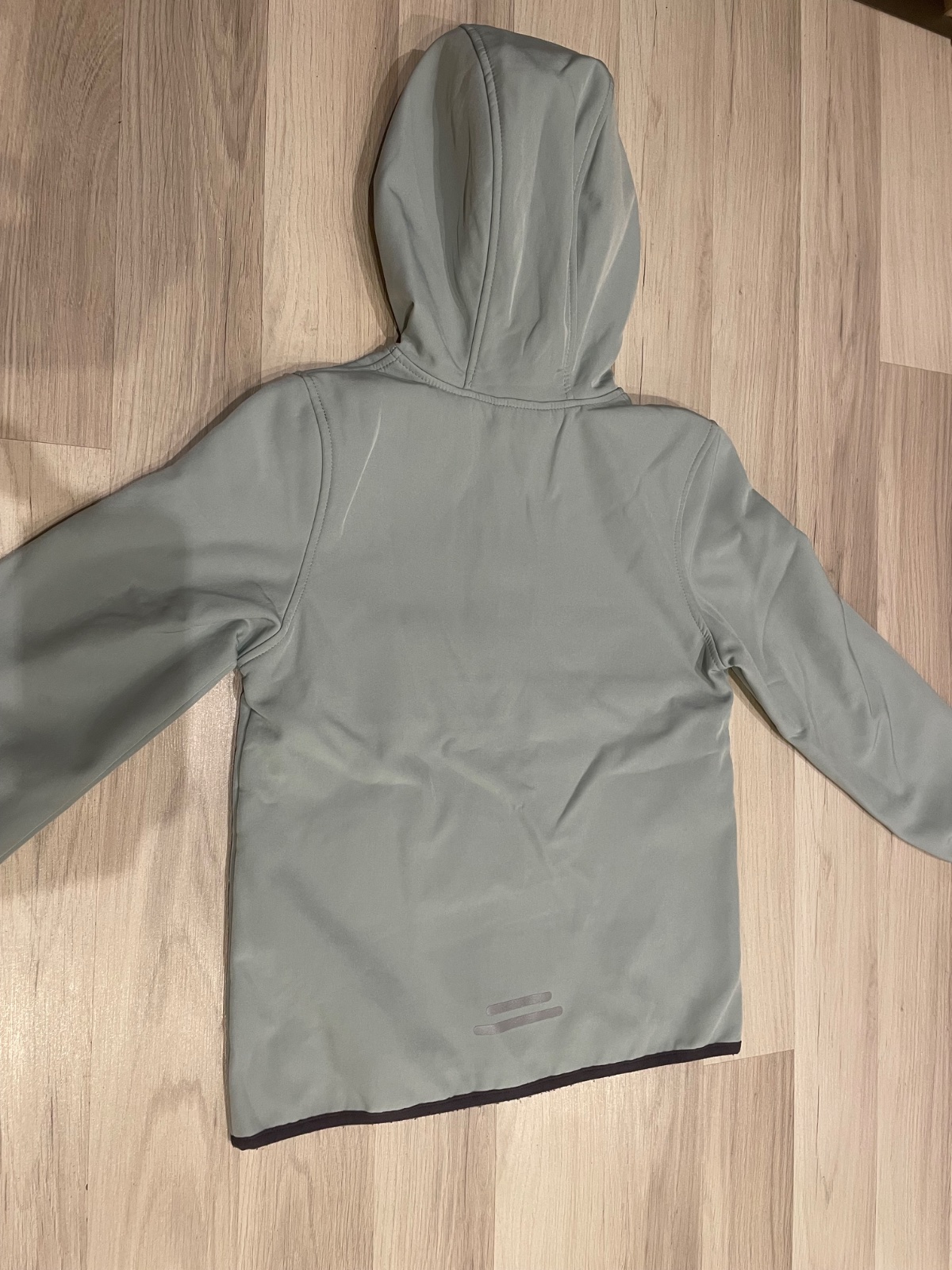 Malo nosena, neutralna farba pre chlapcov aj dievcata - farba ako na obrazku, bunda zateplena sivym fleesom, vrecka na zips, chranic zipsu, putko na zavesenie, neodnimatelna zateplena kapucna, reflexne prvky, gumka na pante rukava, zopar malych zmolkov na pantoch inak super stav, uprednostnujem osobny odber.