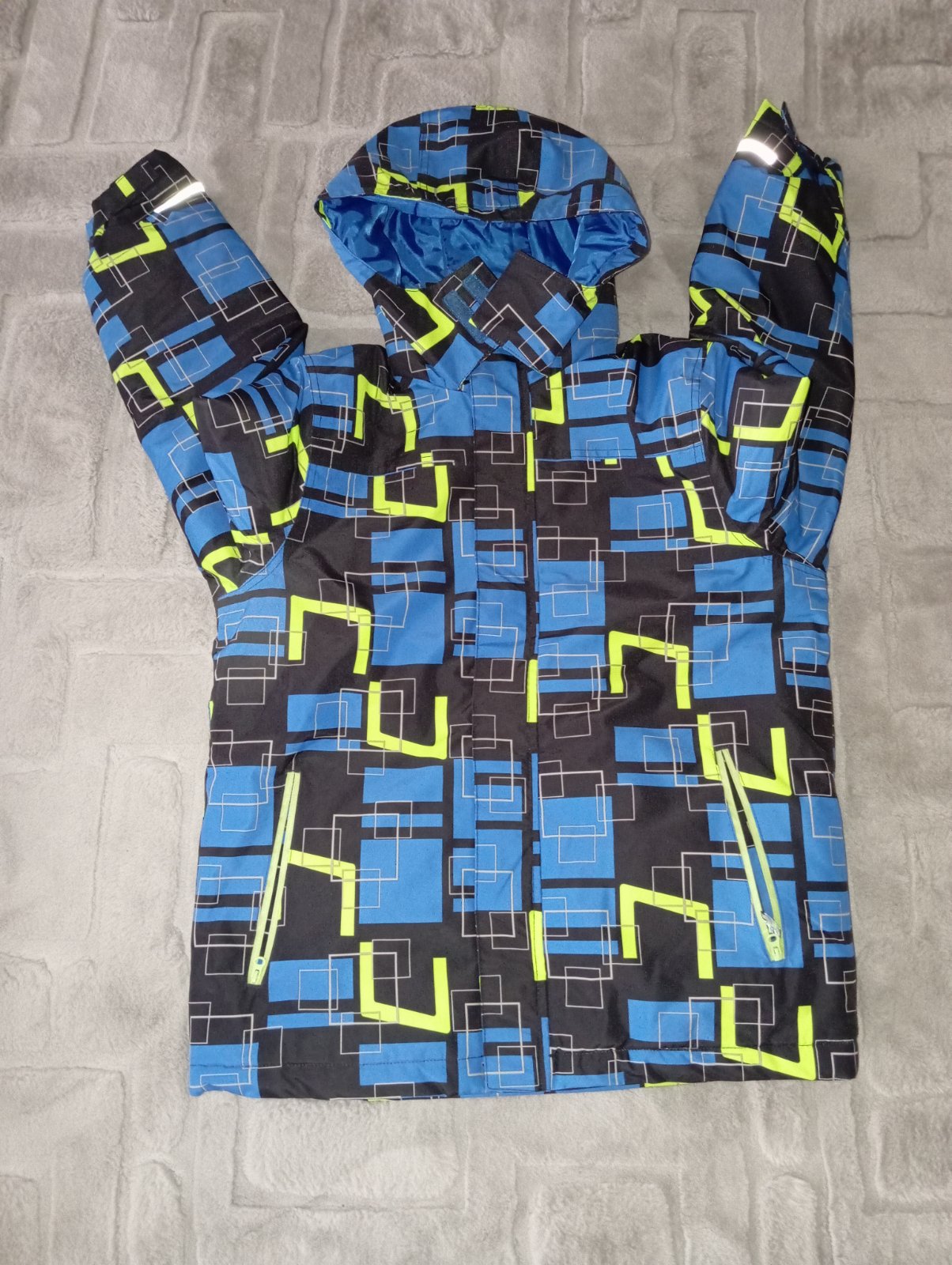 Veľ.164/170, kapucňa napevno, lyžiarsky pás, bočné vrecká, reflexné prvky, vode odolná.Nosená na LV.Nemá žiadne poškodenia.Cena vrátane poštovného.