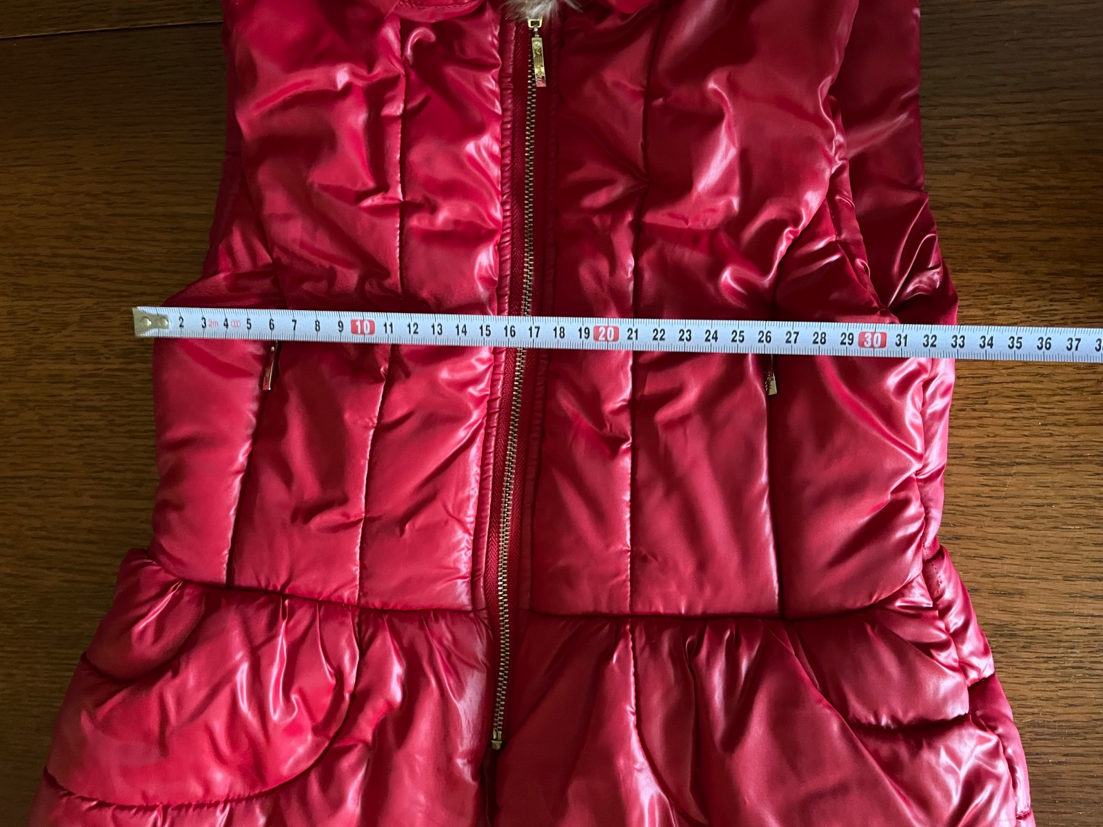 Kožušinka je veľmi bohatá a z golierika sa dá odopnúť, vesta tak získa iný vzhľad. Zvnútra je teplá podšívka, po bokoch sú skryté elegantné vrecká.
