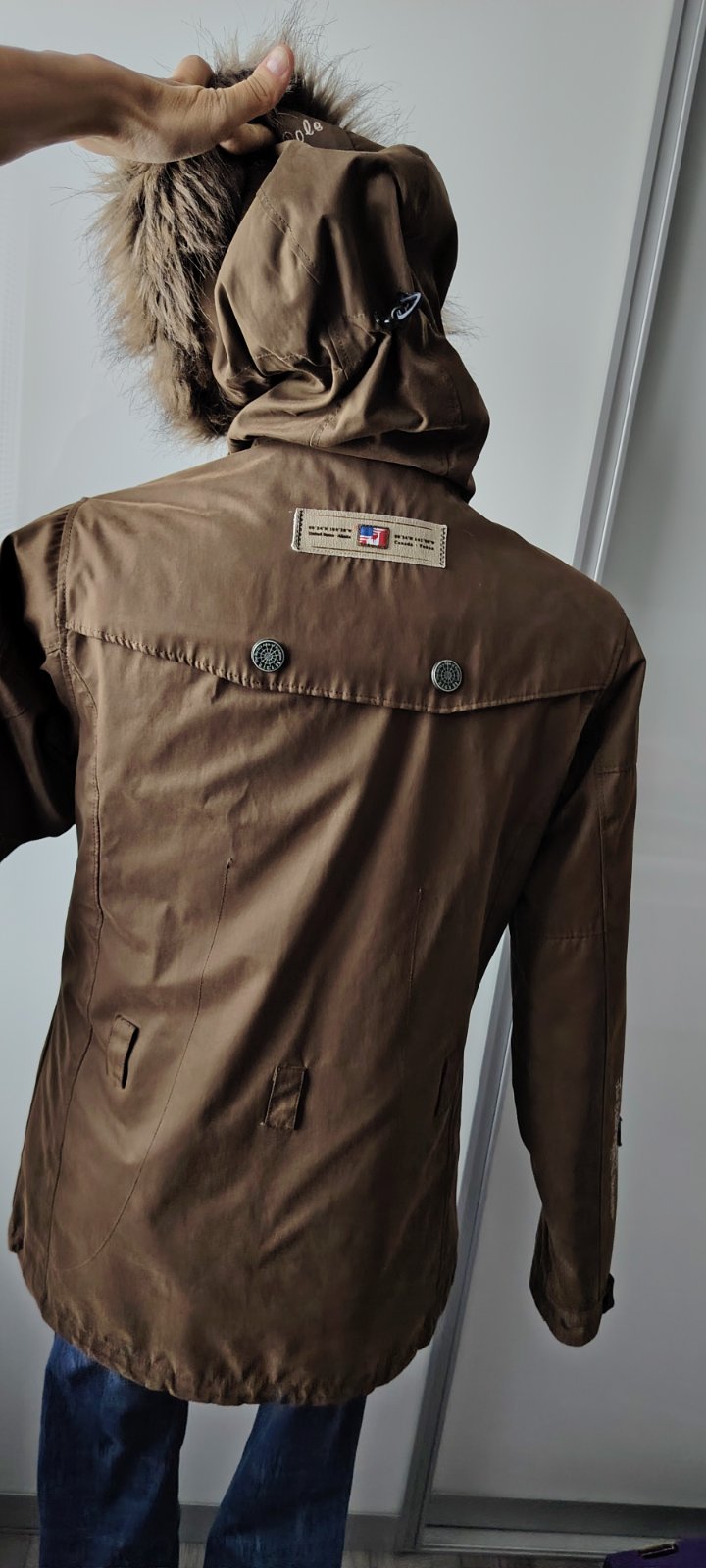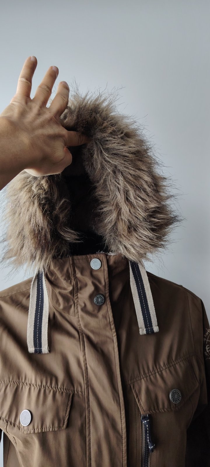 Krásna hnedo-horčicová farba, detailné prepracovanie, možnosť odopnúť kožušinu a mať tak bundu aj na jar, jeseň....pozri aj ostatné kúsky z môjho šatníka...