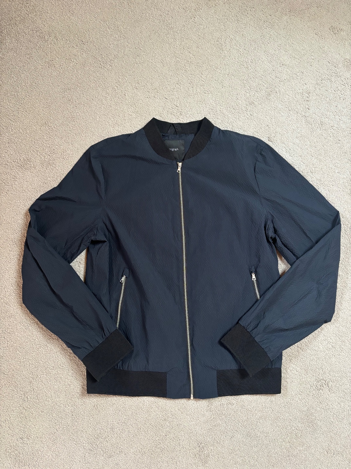 Veľkosť S, tenká podšitá sieťovinou , tmavomodrá farba, značka Identic, 100% stav. hmotnosť 350 g, cena + pošta Rozmery: rukáv od krku/ pleca/pazušky - 81/68/47 cm šírka pod pazuškami - 55cm / ...