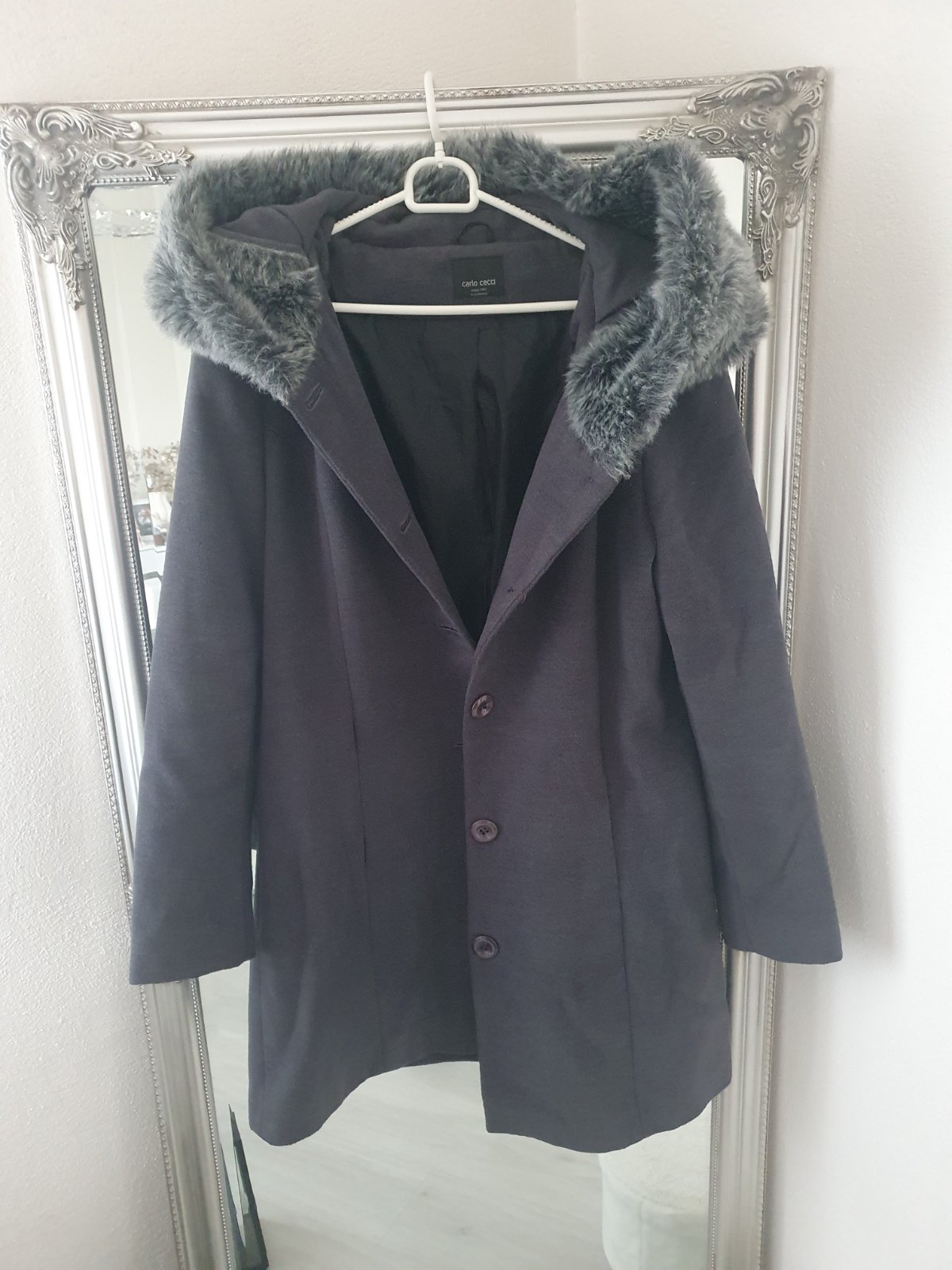 Sivy kabatik vel.42,parkrat obleceny.dlzka 88cm.sirka prsia 2x55cm.bez chybicky.