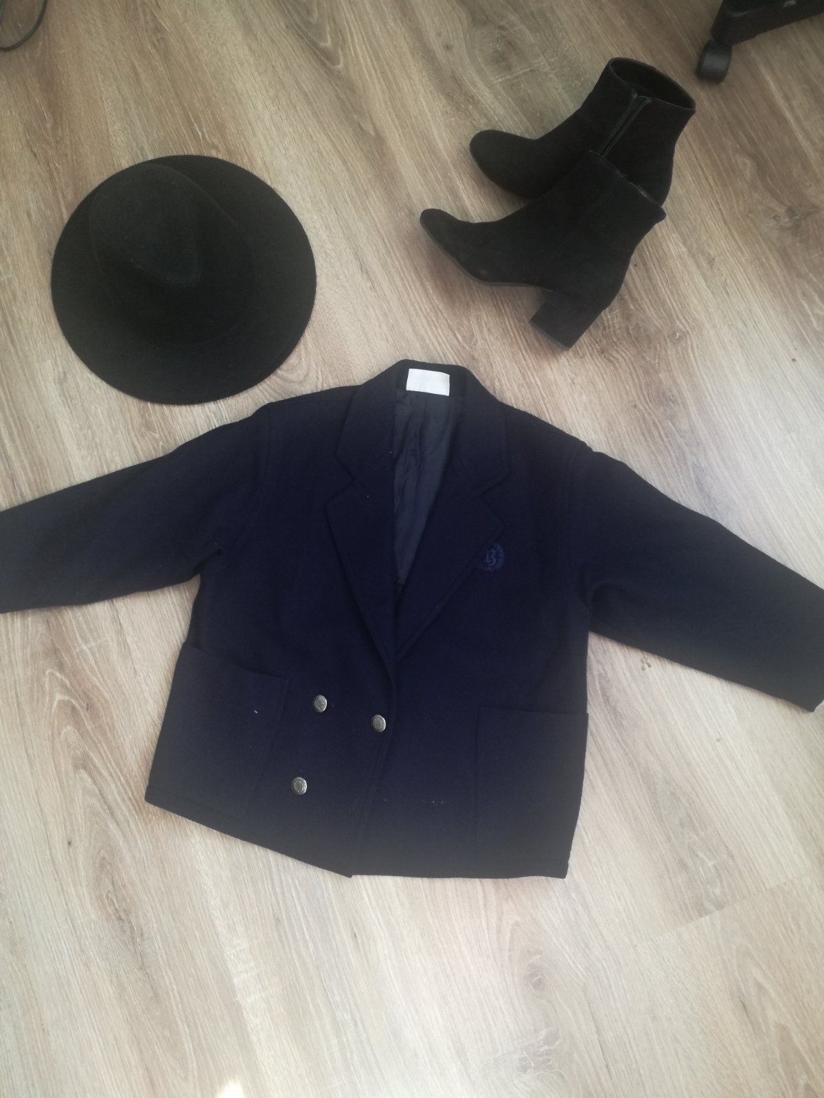 Vintage kusok, velkost S, ale podla mna by sadlo aj na M, hrubsi material - vid stitok, rukav 3/4, 1 ozdobny gombik vpredu odpadol, treba ho prisit, inak bez chyby, v priapde zaujmu pomeriam, velmi pekne sedi, 80 percent vlna