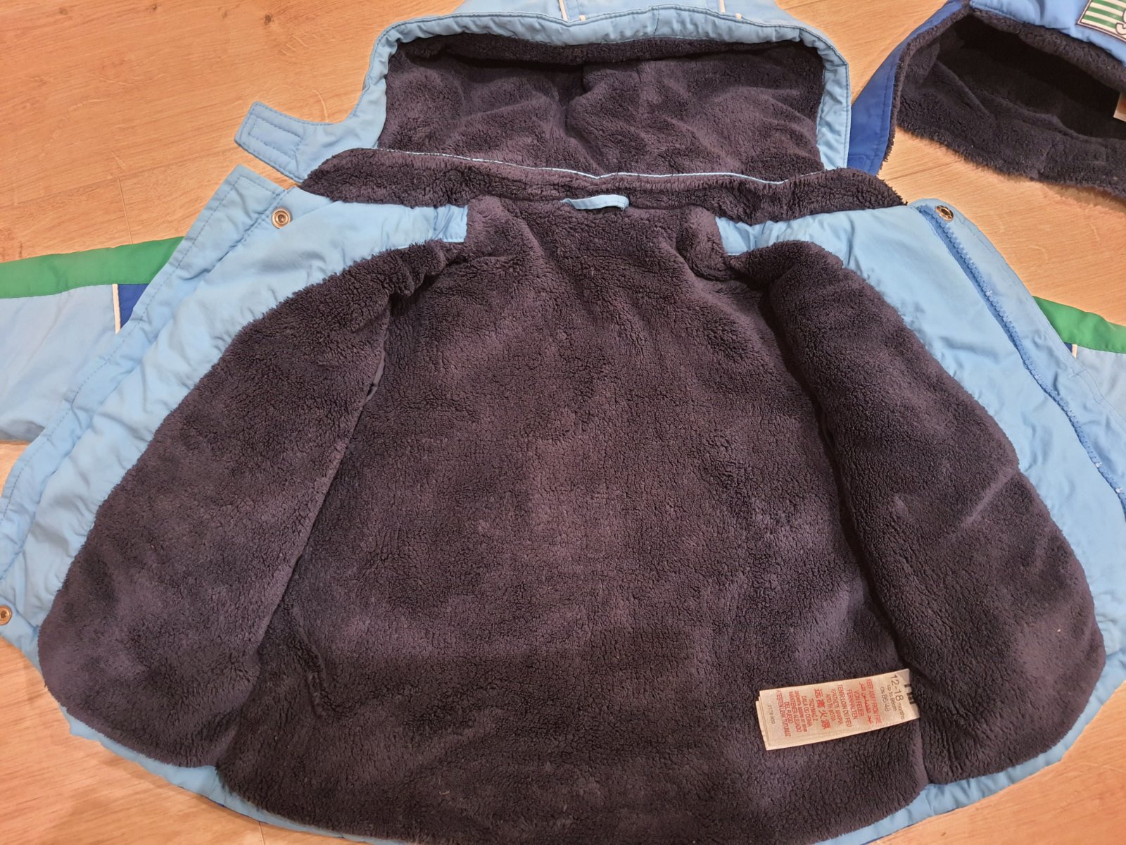 krásna zimná bundicka v top stave podsitá flisom velkost : 9-12mes podla mna skor 12-18mes cena: 11.50€ celková dlzka: 38cm širka podp azuskami: 2x33cm rukáv od krku :37cm B1