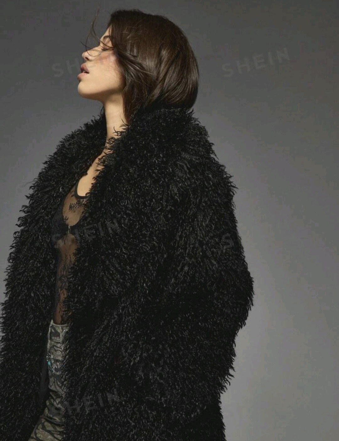 Nenoseny ...Nádherný čierny chlpatý kozuch v.XS/S.Dlzka-123cm,prsia-96cm,dĺžka celého rukavu 78cm.Je nadhernyyy odporúčam na výšku od 167cm