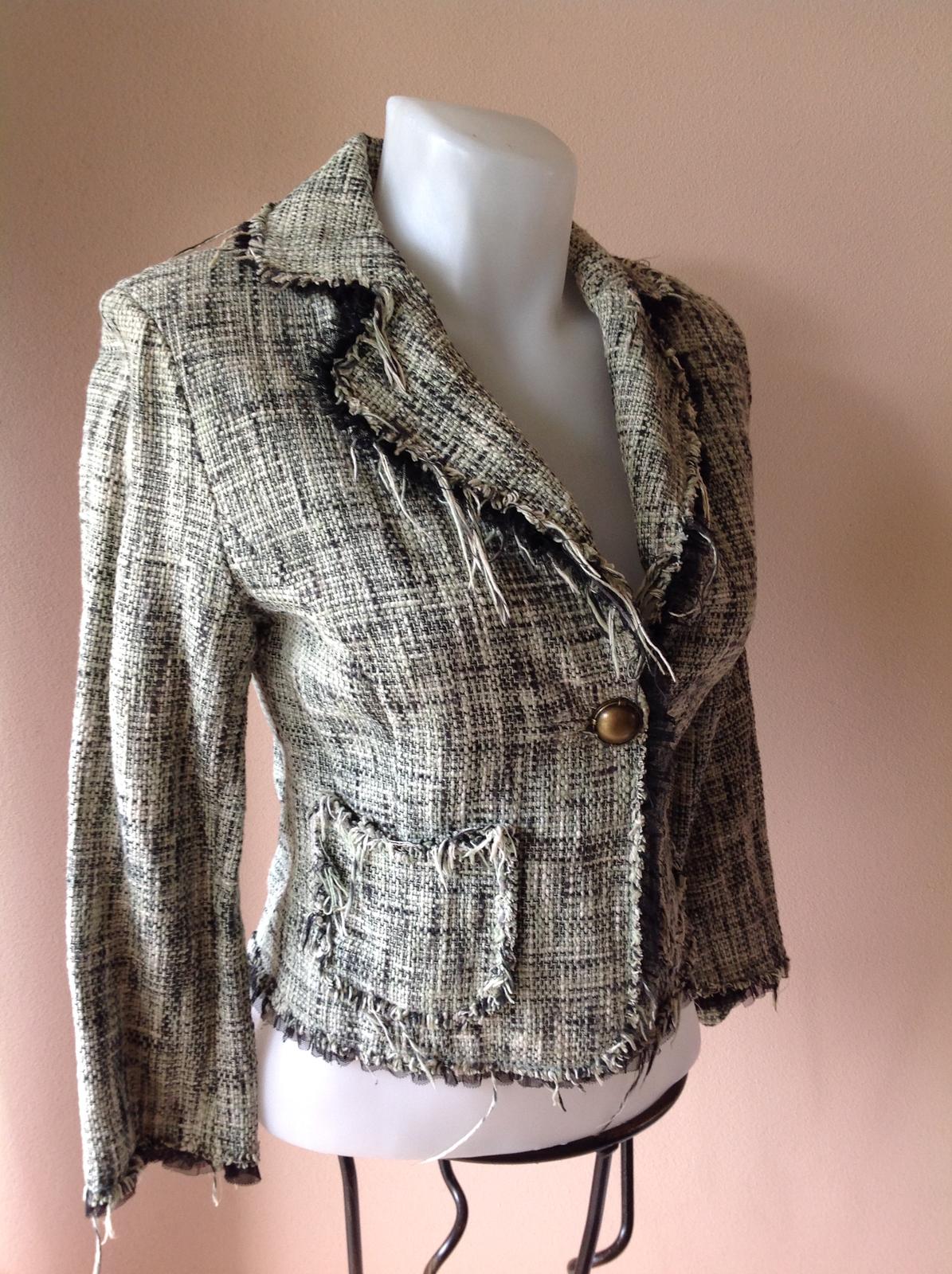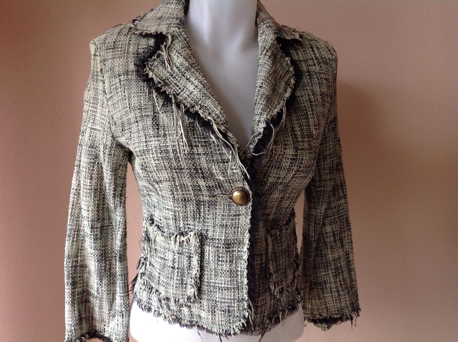 Krasne štýlové sako lemovane okolo vystrihu spodku a rukavov cipkou v top stave