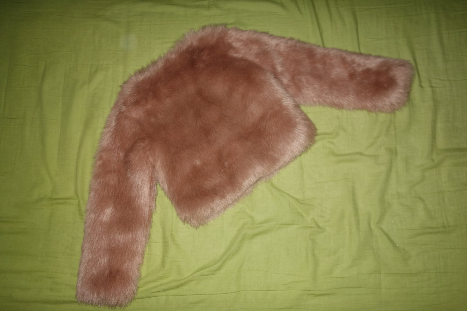 Krasny kabatik z umelej kozusinky vo vybornom stave- ako novy. Je urceny skor na sviatocne prilezitosti- na saty, zapina sa len pod krkom na hacik. Je tak do miernej zimy. Je staroruzovej farby.