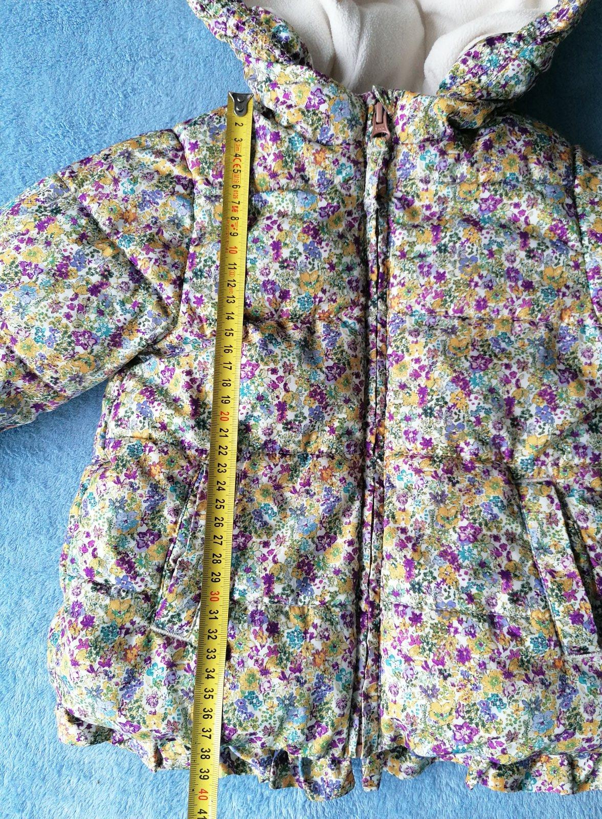 Zimna bunda, parka nosena 2 detmi, ale nema flaky ani zodrane rukavy. Vel.92, ale zda sa mi trosku vacsia - miery su nafotene.
