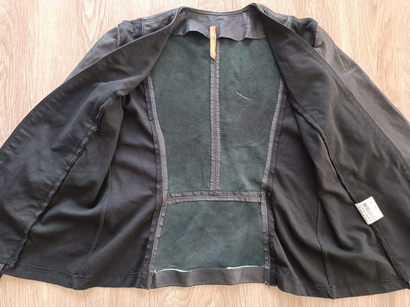 Tenké sačko resp.blejzer, koža v kombinácii wlastickou látkou.