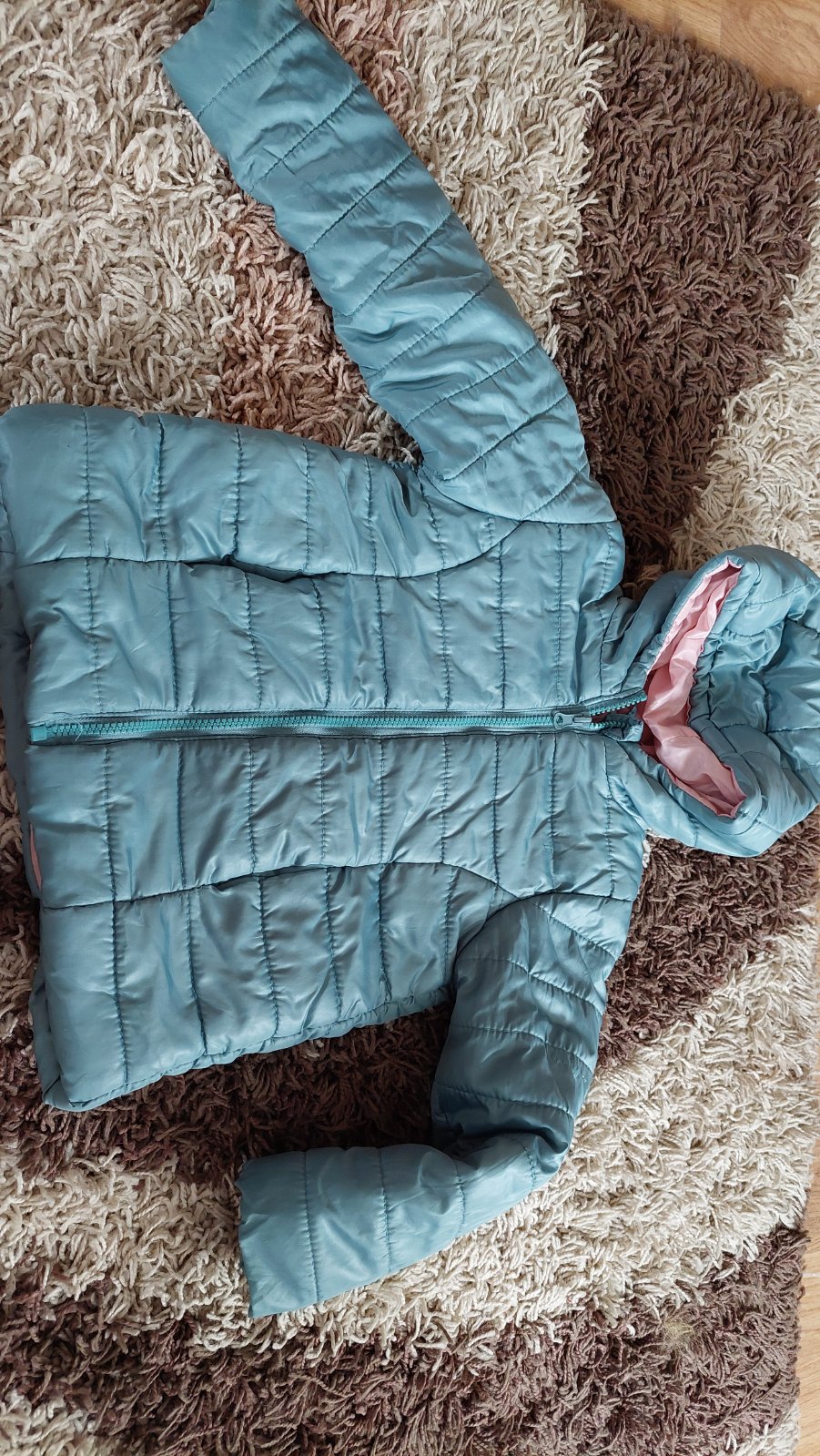 Dievčenská bundička, využili sme na viac zim, veľkosť 110,dcerka nosila do 5rokov,nosena,viac krát praná, no bez nejakých viditeľných poškodeni, podľa mňa v peknom stave... Farba zeleno-modrá, taka...