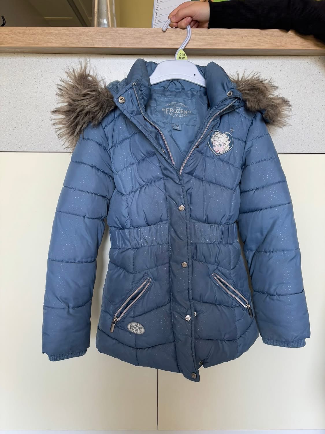 Ponúkam na predaj. Zimná bunda Frozen. Veľkosť 128cm, užší strih. Kapucňa sa dá odpojiť.
