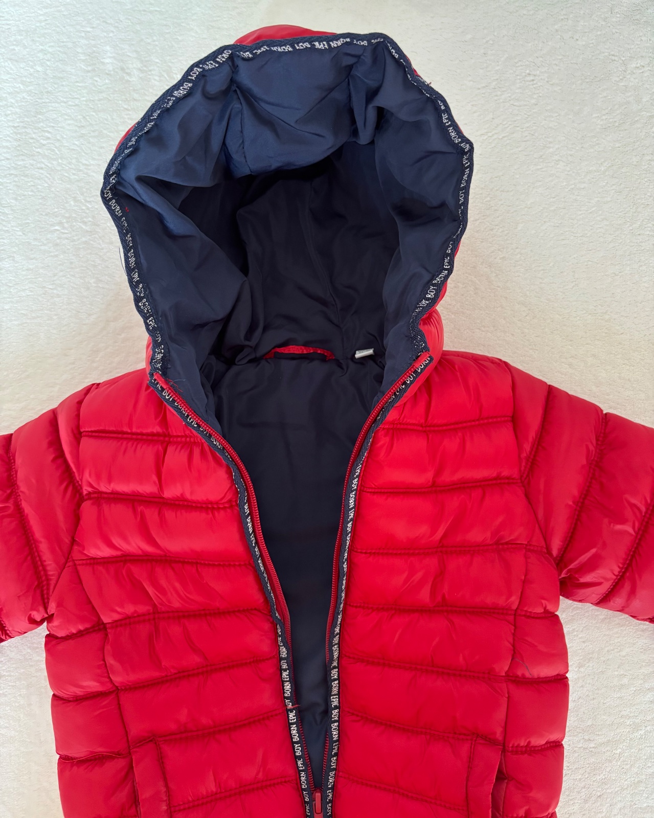 Ponúkam krásnu chlapčenskú bundičku Epic boy, značka Fagottino (OVS kids). Top stav. Je vatovaná, ale podšívka nie je fleecová, preto odporúčam na jeseň a miernejšiu zimu. Podľa štítka je veľkosť 92, 24-30 mesiacov, ale je to talianska značka, preto skôr na 2 roky. Dĺžka bundy od pleca po spodný okraj 37 cm, dĺžka rukáva od pleca 33 cm, šírka dolu 26-28 cm.