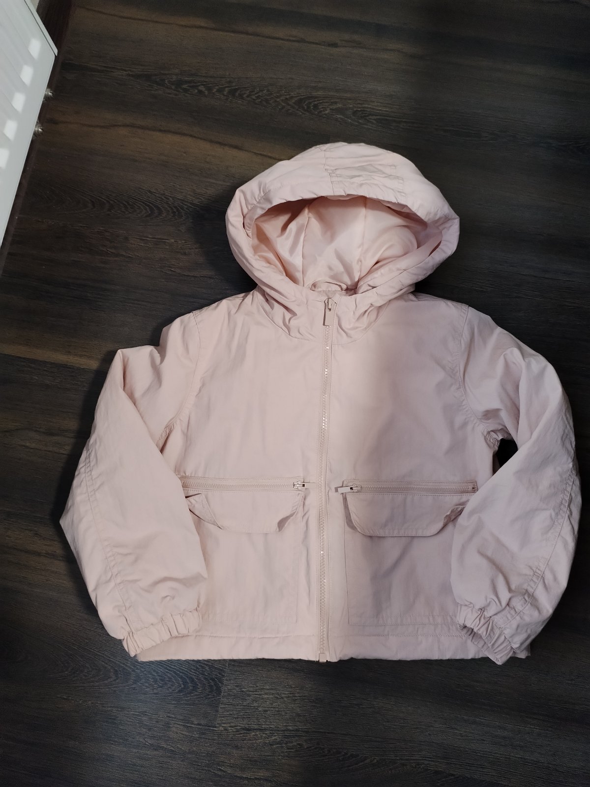 dĺžka od šije 45 cm, šírka pod pazuchami 45cm, dĺžka rukávu 46,5cm,100%polyester, vacky na zips, dole aj guma na stiahnutie v páse, top stav, bez poškodení a fľakov, kapucňa