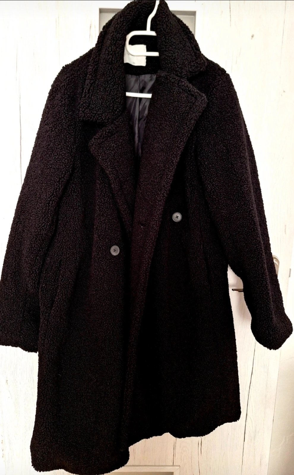 Čierny dĺhy teddy kabát bol málo nosený je ako nový.