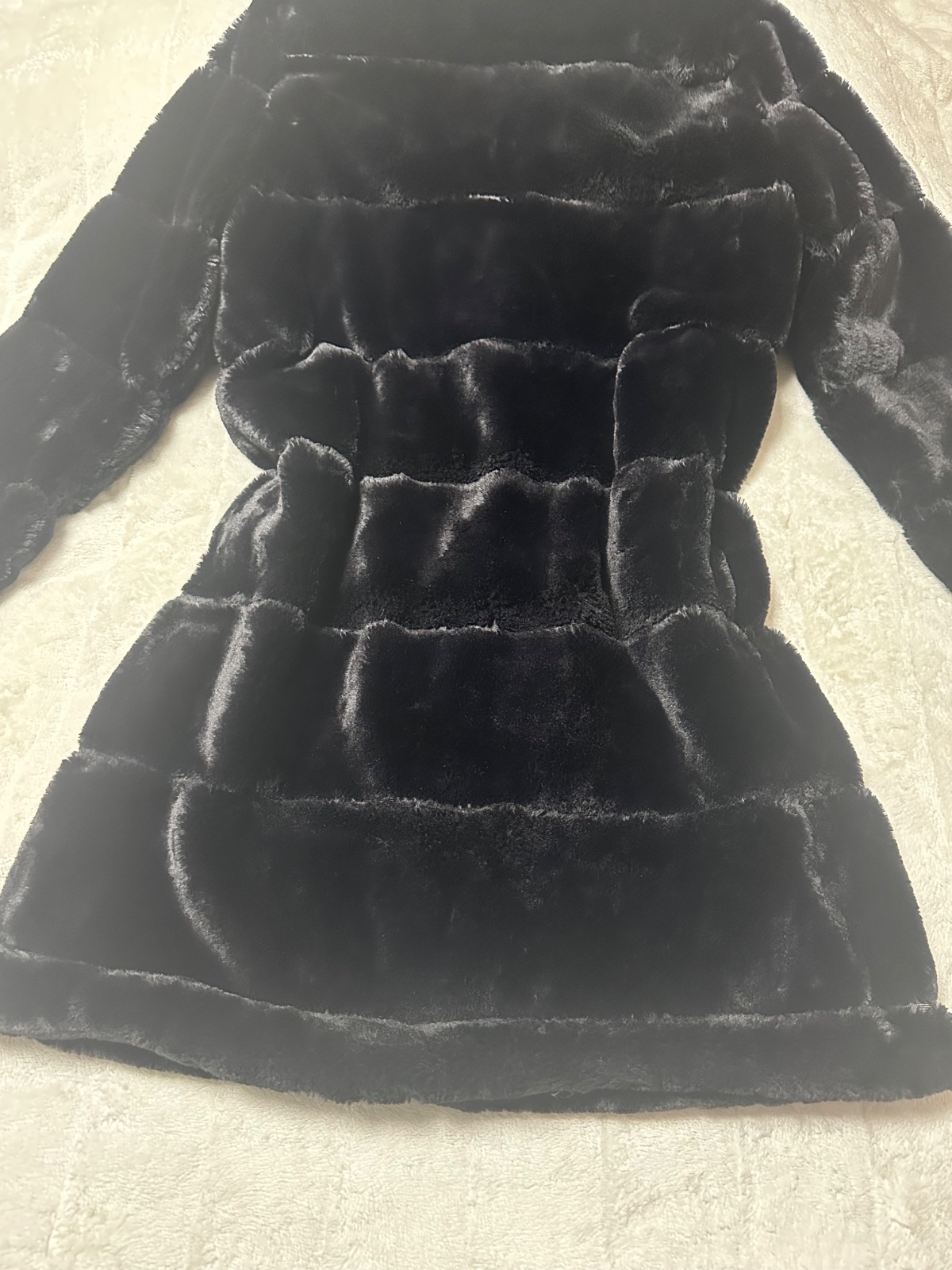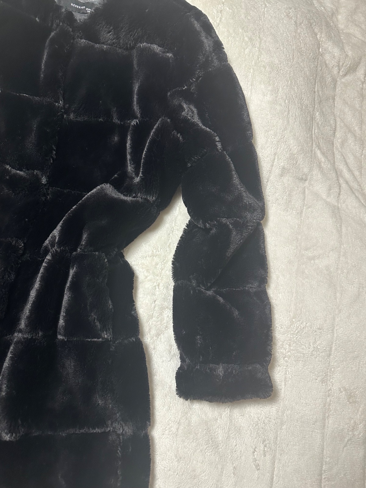 Čierny dlhší kabátik z umelej kožušiny Reserved