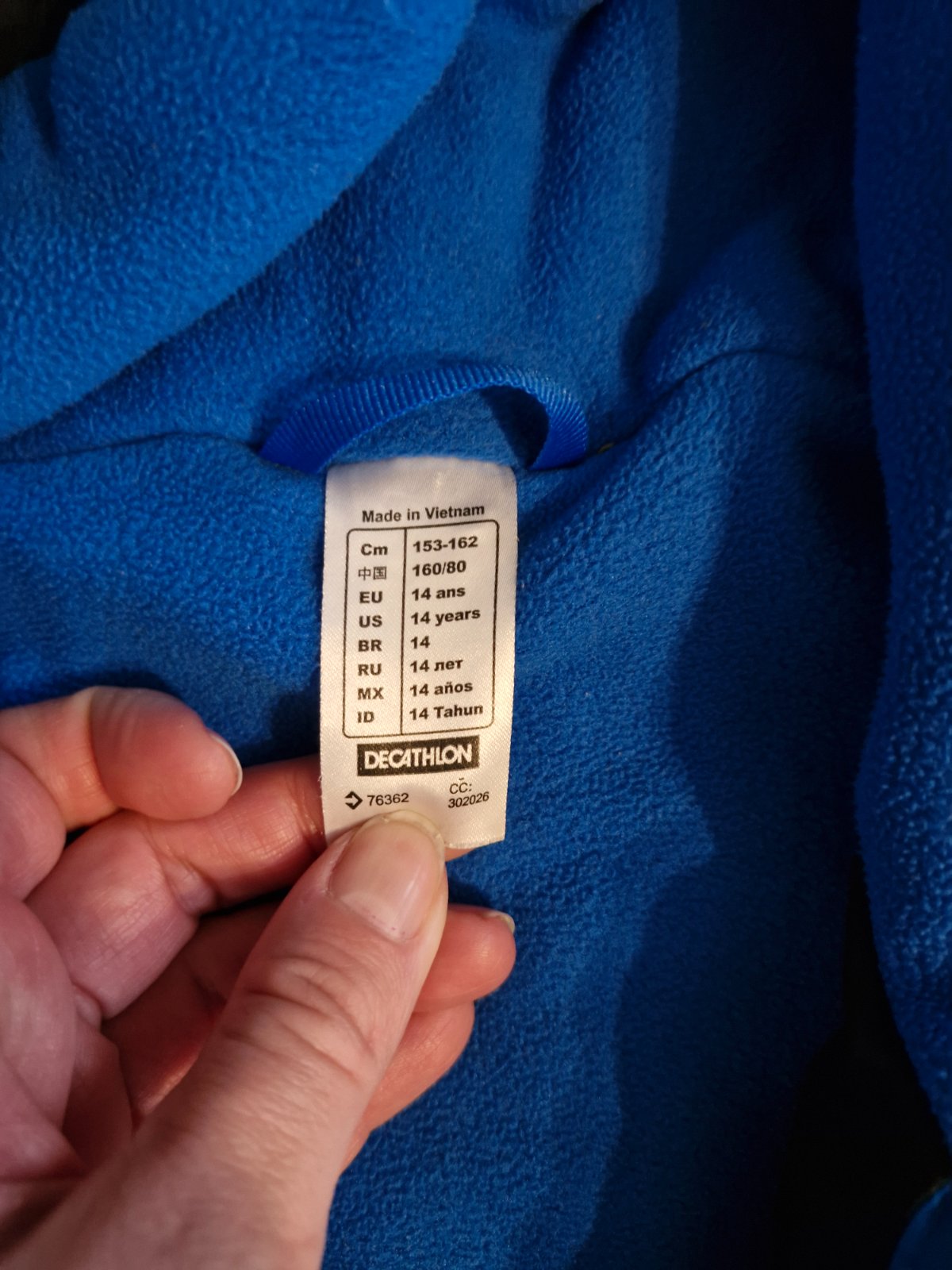 Výborný stav, málo nosená. Má jednu dierku pri vrecku, ja zašitá rukou. Inak je bez chybičky veľmi pekný stav. Veľkost 14 rokov na153-162 Dĺžka 63 cm Šírka 55 cm Rukáv 62 cm