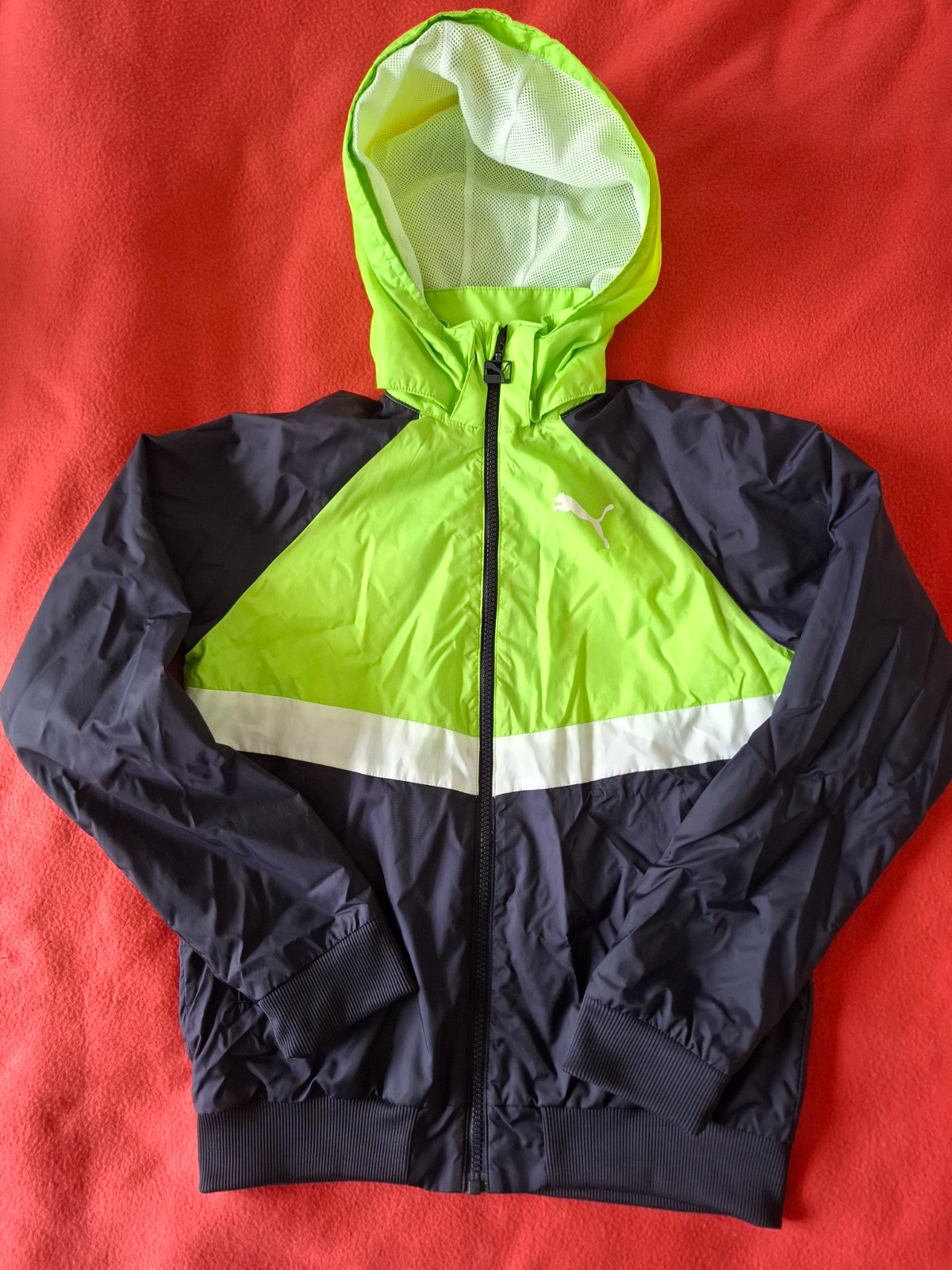 Predám takmer nenosenú bundu, bez poškodenia. Veľkosť 152, rozmery: dĺžka 58cm, šírka pod pazuchami 46cm, rukáv od krku 67cm. Kapucňa je odnímateľná.