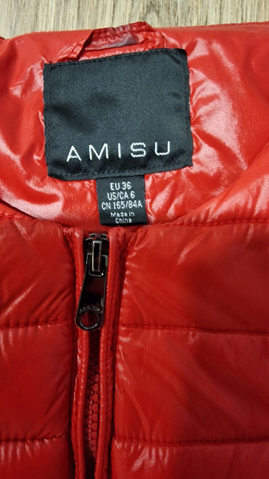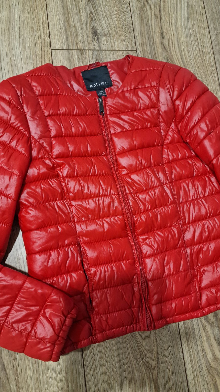 Dámska bunda Amisu, veľ.36, rozmery: dĺžka 63cm, pod pazuchami 2x49cm, rukáv od krku 76, od pleca 65 a od pazuchy 46cm. Bunda je ľahká, ale teplučká. Má pás proti podfukovaniu. Nosená vnučkou minul...