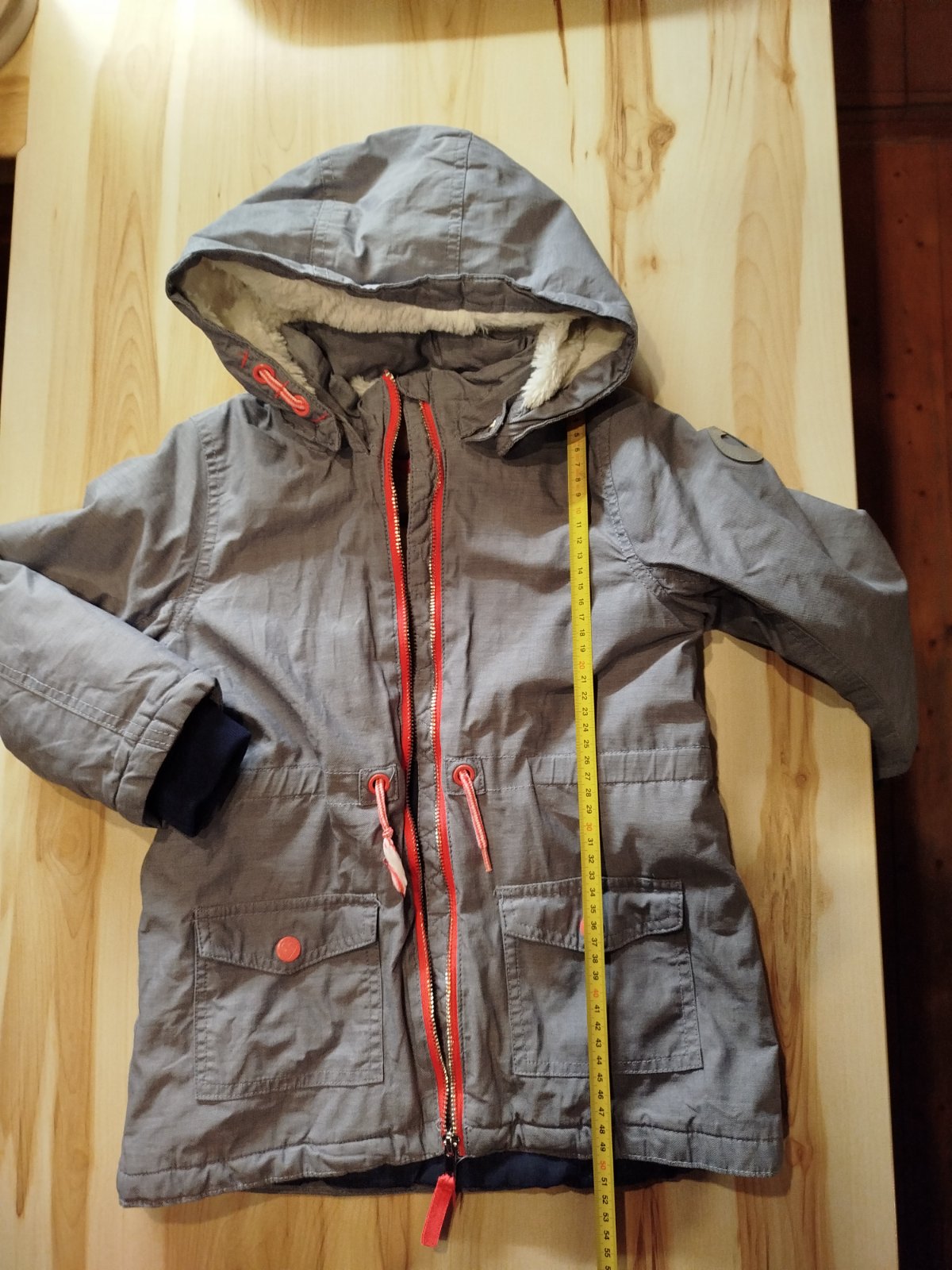 predám krásnu zimnú bundu, mierne predĺžený strih, rukávy sa dajú prispôsobiť cvokmi, dĺžka 55cm, vonkajší rukáv od kapucne 49cm, šírka 43cm, veľmi zachovalá,nosená jednu sezónu, zvnútra je látkové...
