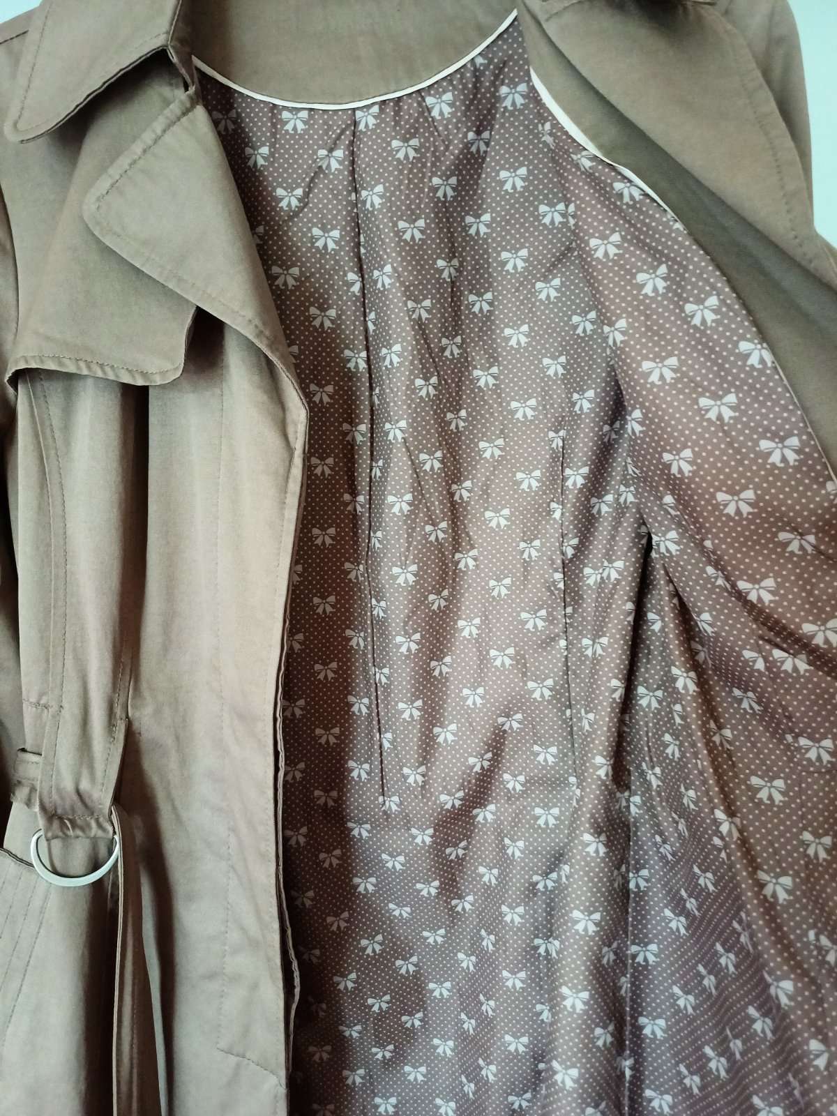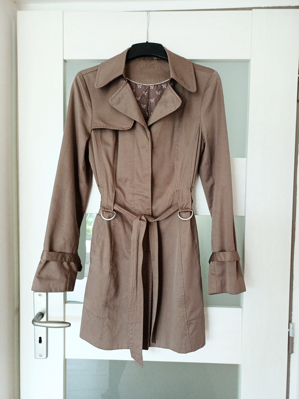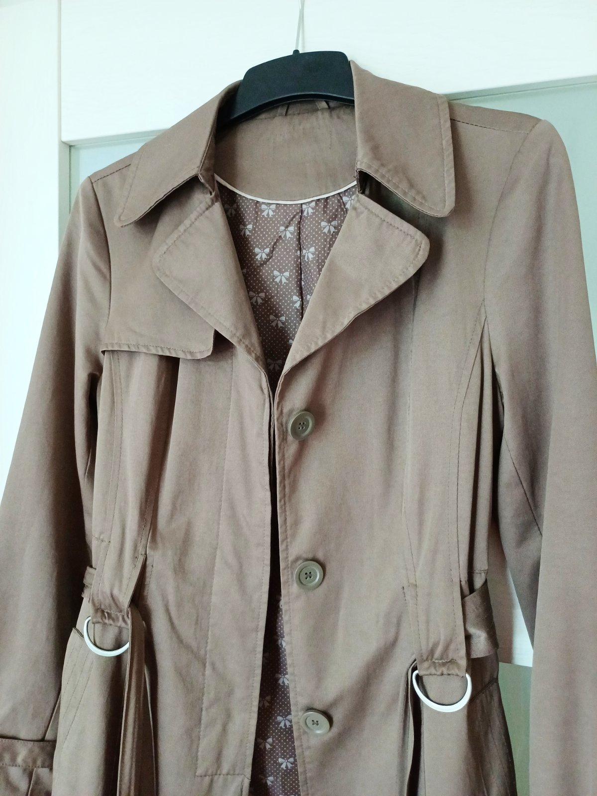 Minimálne nosený kvalitný trenčkot, nepoškodený, výborný stav, zapísanie na gombíky, podšitý, pohodlný a príjemný na nosenie.