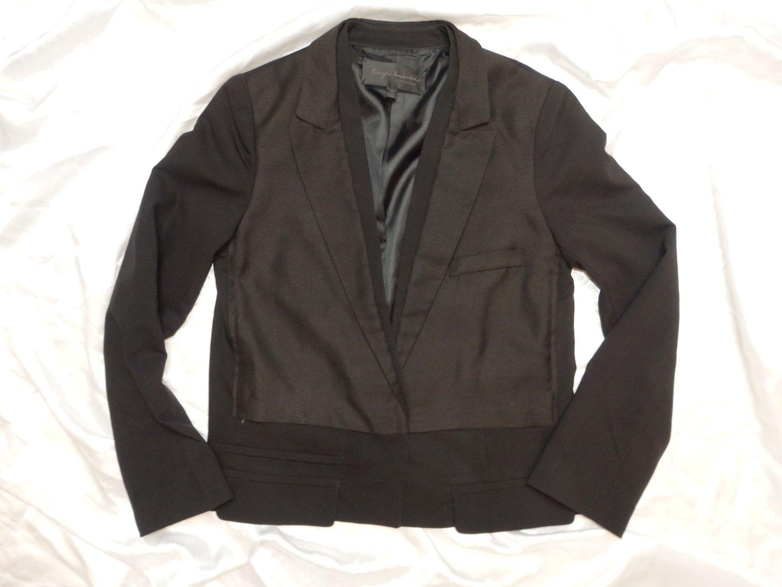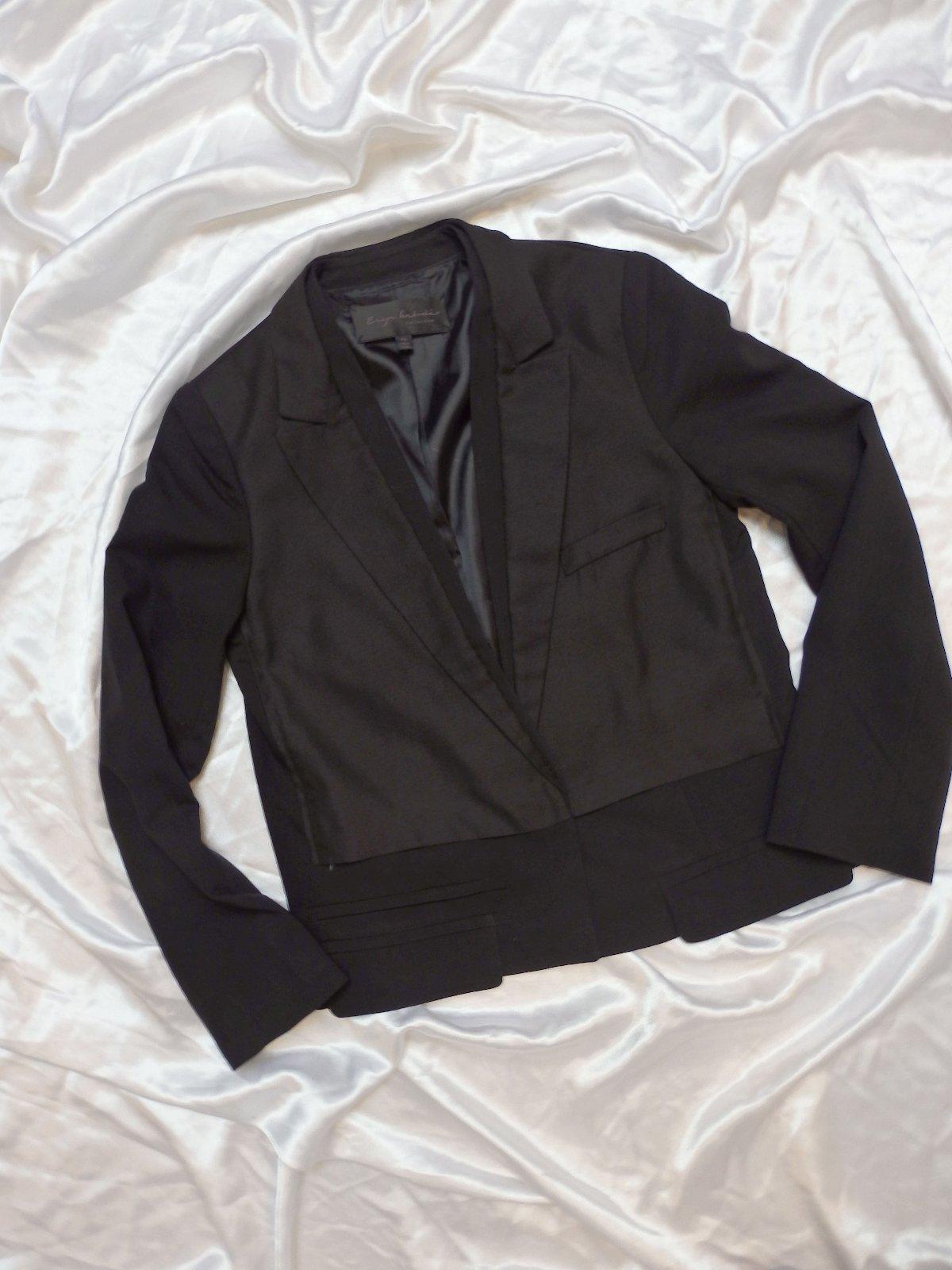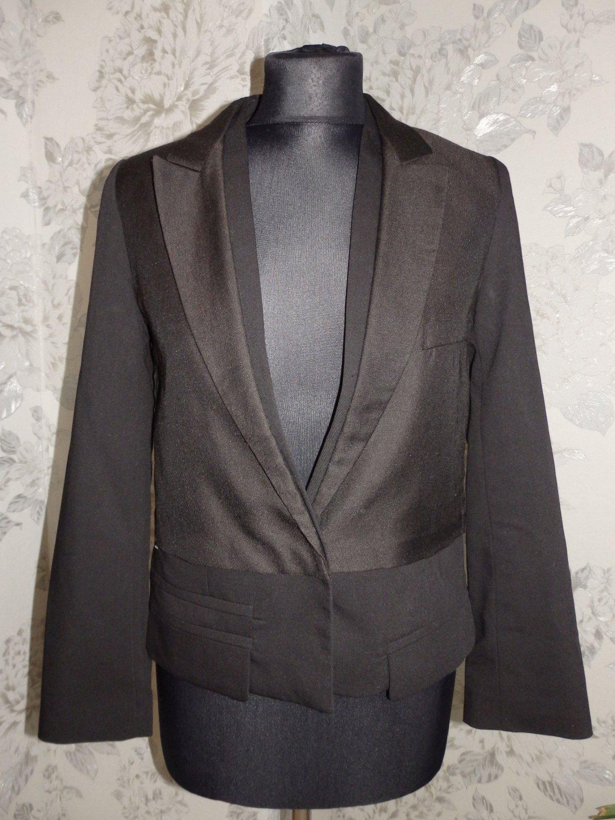 Luxusny trendy elegantny blejzer,čiernej farby,s podsivkou,dvojity vzhlad.73%polyester,22%viskoza,5%polyuretan.super stav.PC nad 150€.