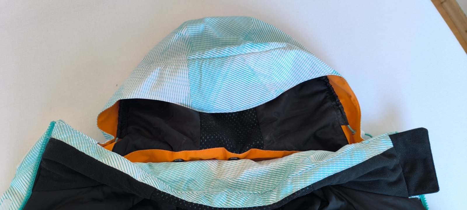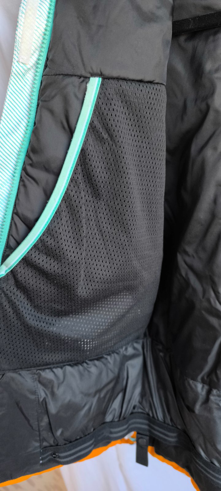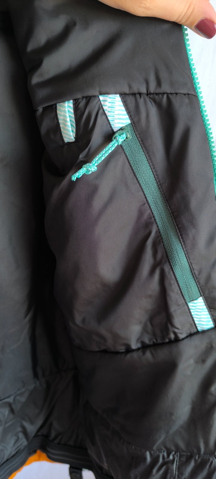 Pár krát oblečená bunda, keď som bola s deťmi na sánkovačke, výborny stav. Je kvalitná, má množstvo vreciek, utierku na okuliare, odopínateľnú kapucňu, perfektná pre lyžiarov a keďže ja nelyžujem, je nevyužitá. Veľkosť UK 14, naša by to mala byť 42, rozmery cez prsia 2x55cm, rukáv 64 cm, dĺžka 67 cm