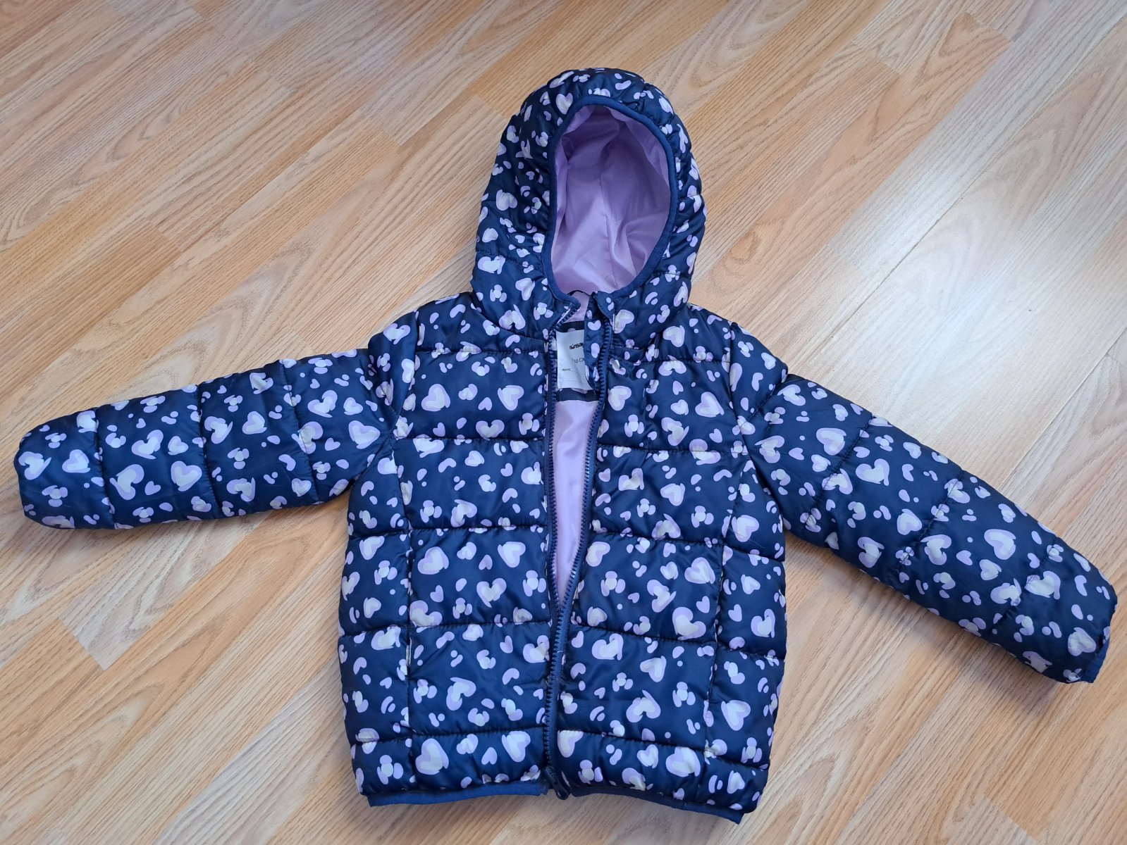 Pekná bunda bez vážnych poškodení.Je zateplená na chrbte jemným flisom.Nie je moc hrubá,takže len do teplej zimy.V páse na gumičku stiahla,takže pekná k šatom,sukni.