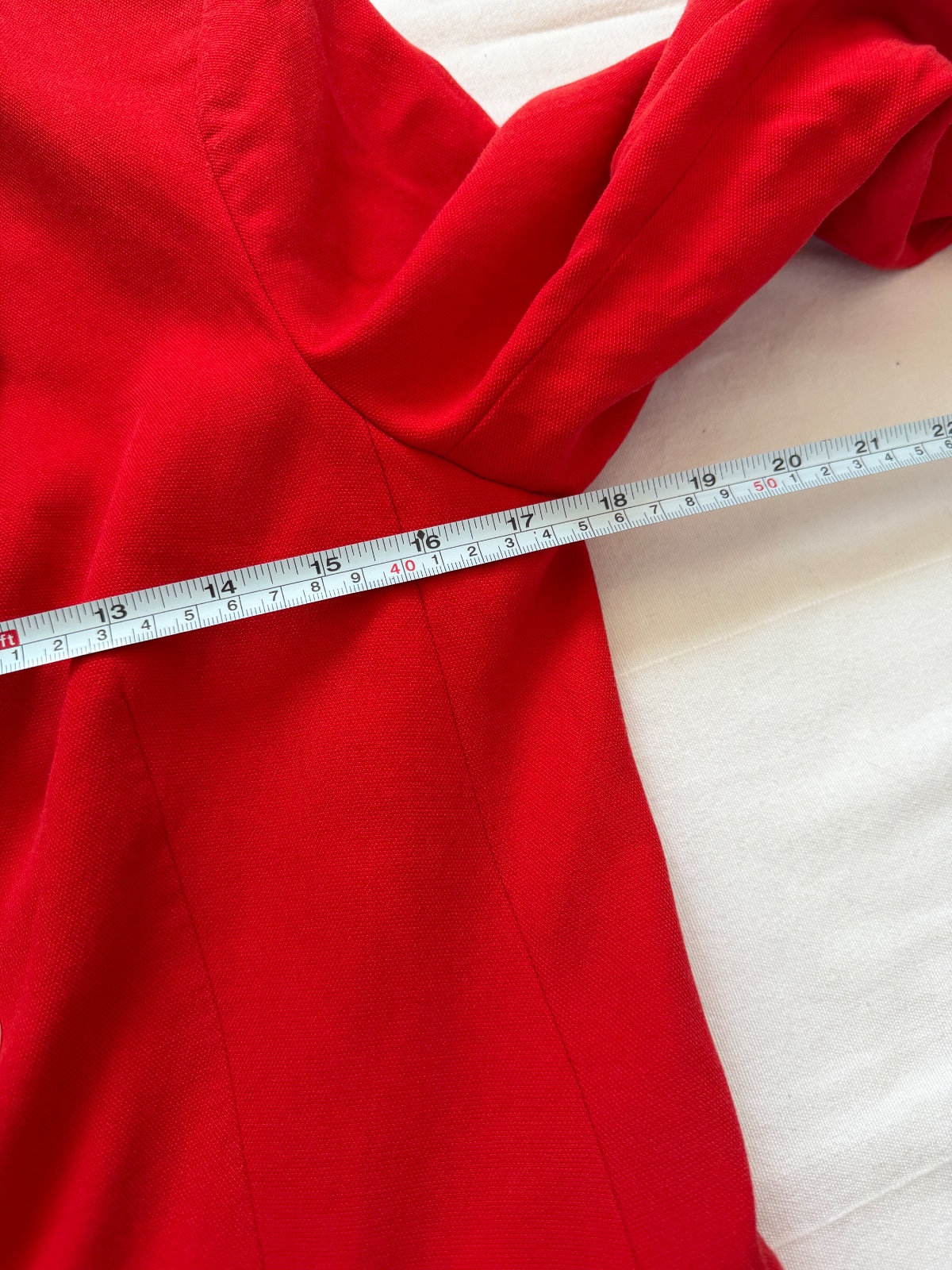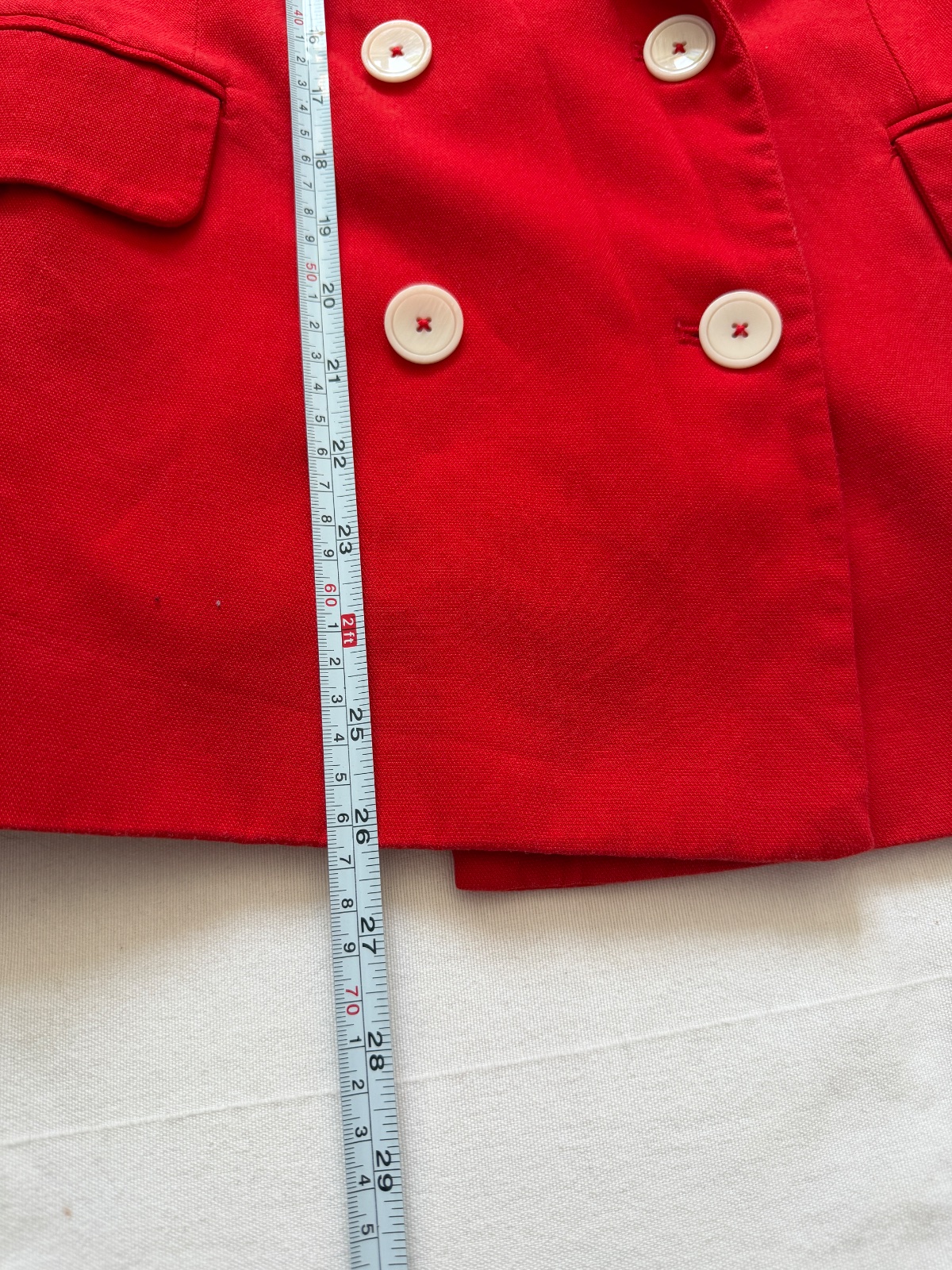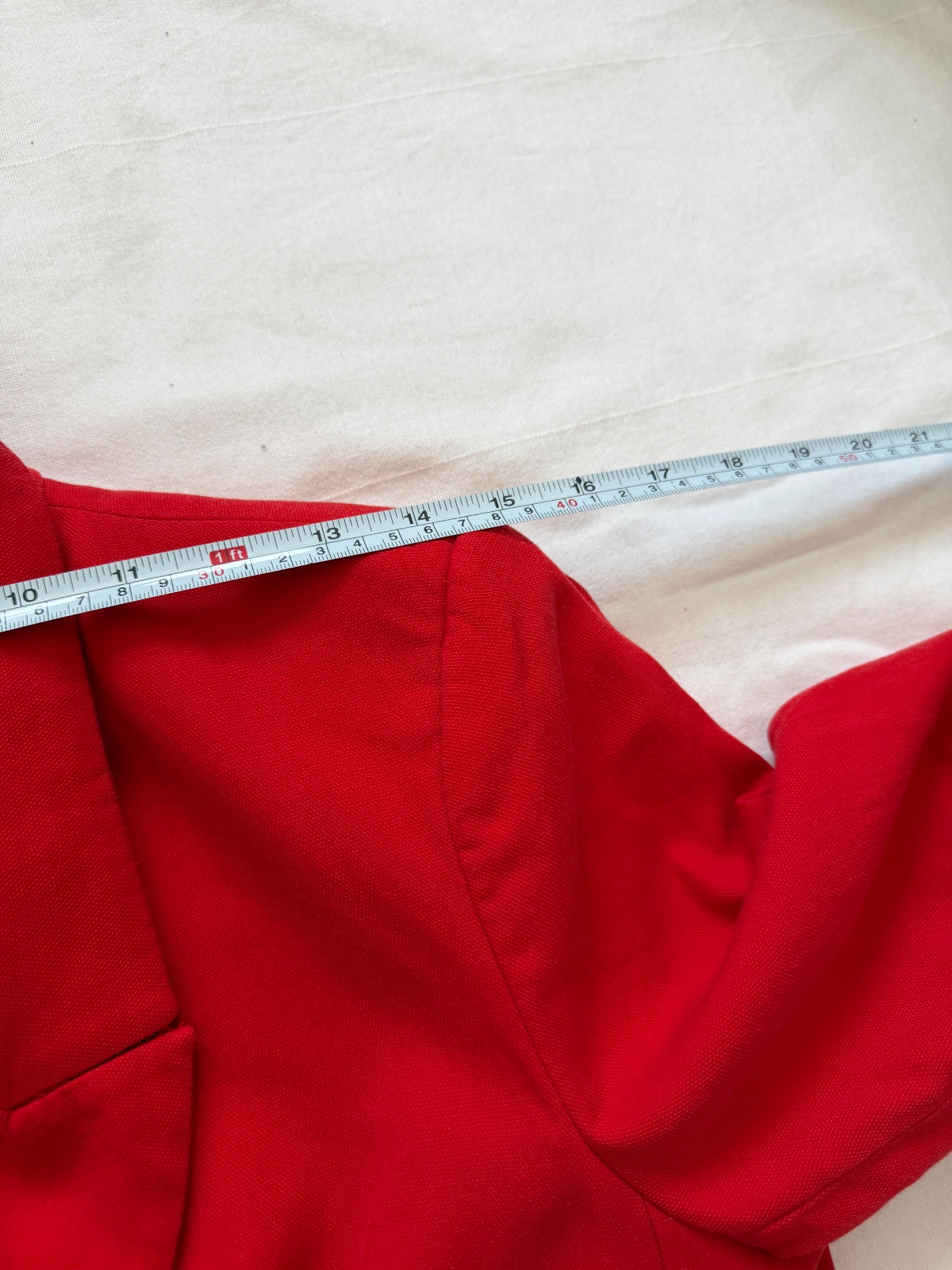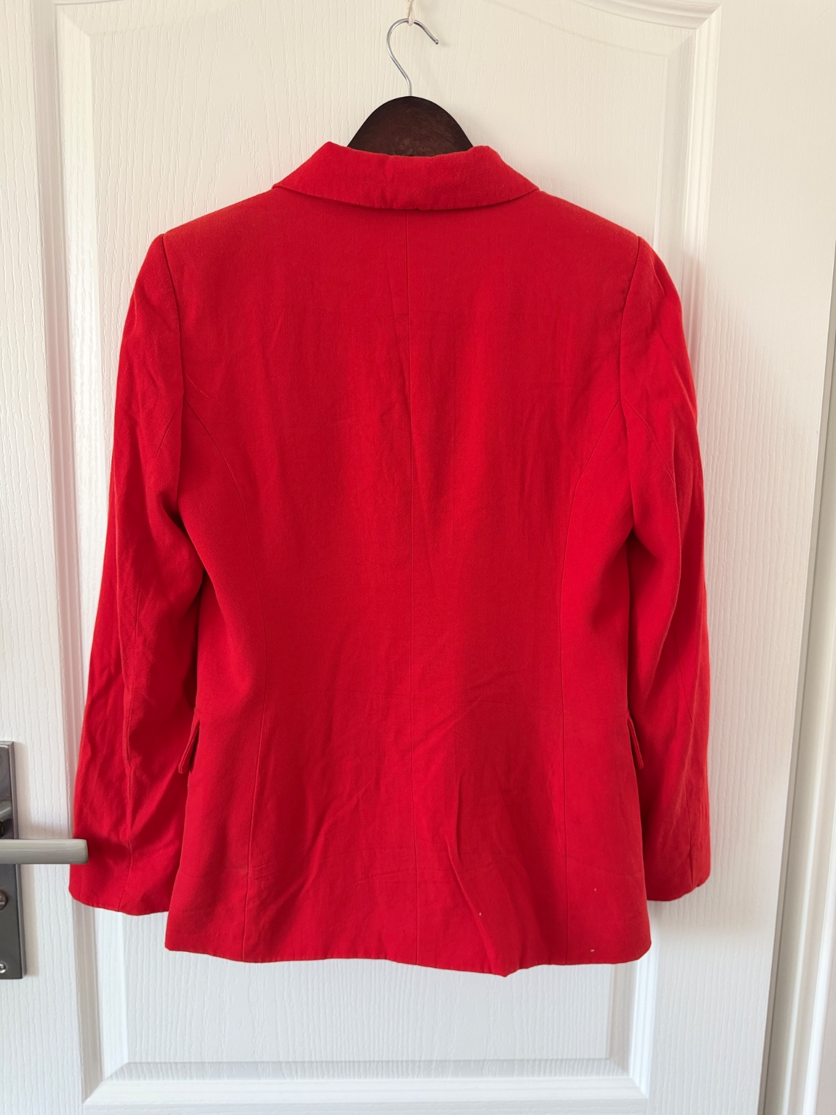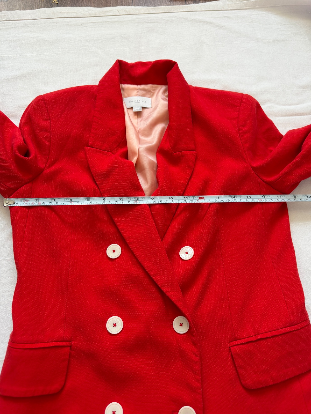 Štýlové dámske červené sako od Springfieldu. Ideálne na elegantný štýl aj na rozptýlenie ležérneho vzhľadu s džínsami. Vďaka zmesi viskózy a Tencelu je látka mäkká na dotyk, priedušná a krásne splýva. Sako má dvojradové zapínanie (ozdobné biele gombíky s červeným prešívaním). Klasické klopy, dve vrecká s klopou a jemné vypchávky na ramenách zvýrazňujú siluetu. Sako má hladkú púdrovo ružovo/béžovú podšívku.