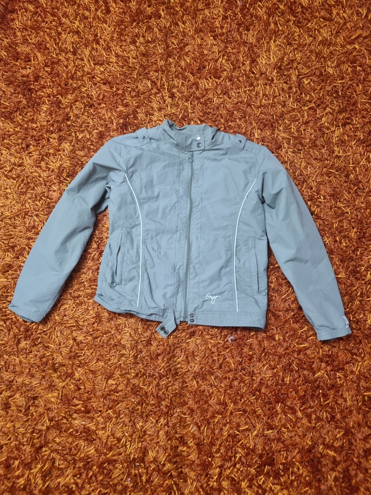Chlapčenská bundička na prechodné obdobie. Zapínanie je vpredu na zips. Dĺžka je 58cm,obvod hrudníka je 98cm a obvod pása je 96cm. Dĺžka rukáva od krku je 70cm.