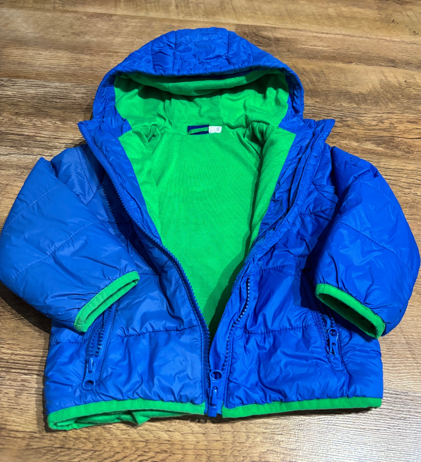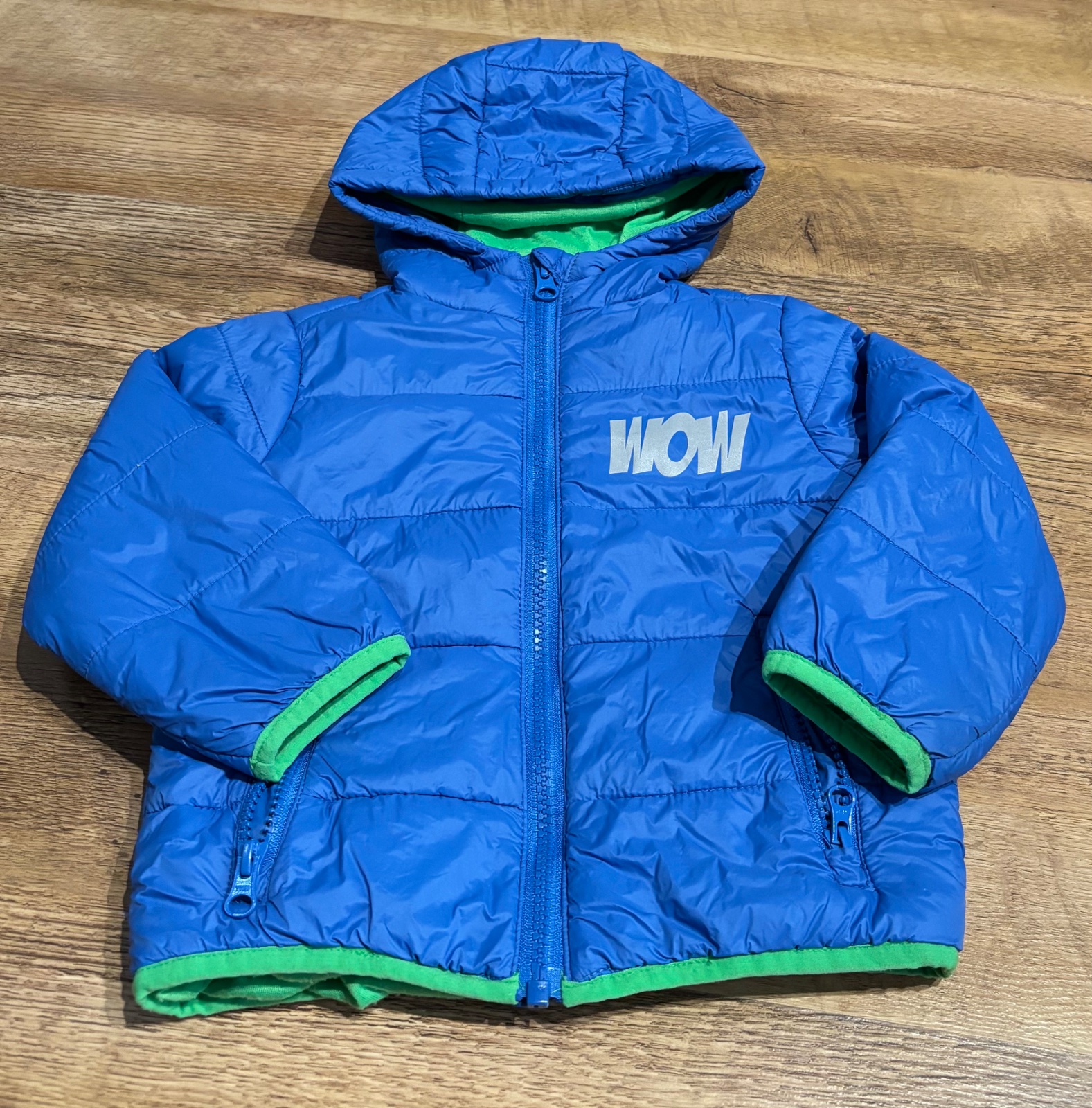 Skôr prechodná zimná bunda na teplejšie zimu, jar alebo jeseň. Veľkosť 86/92. Predám za 3€