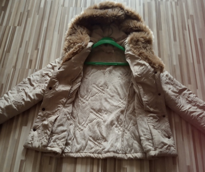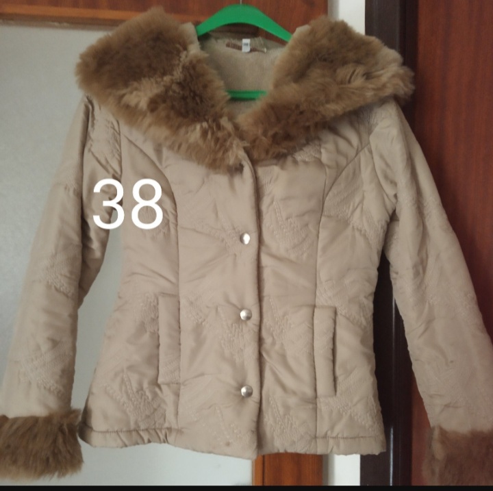 Kratka teplucka bundicka do pasa velkost 38 ,vnutro kozusinka aj okolo krku ,okolo kapucni aj rukavoch ,dlha je bez kapucni 64cm ,rukav od ramena 63cm a cez prsia ma 100cm ,vyborny stav
