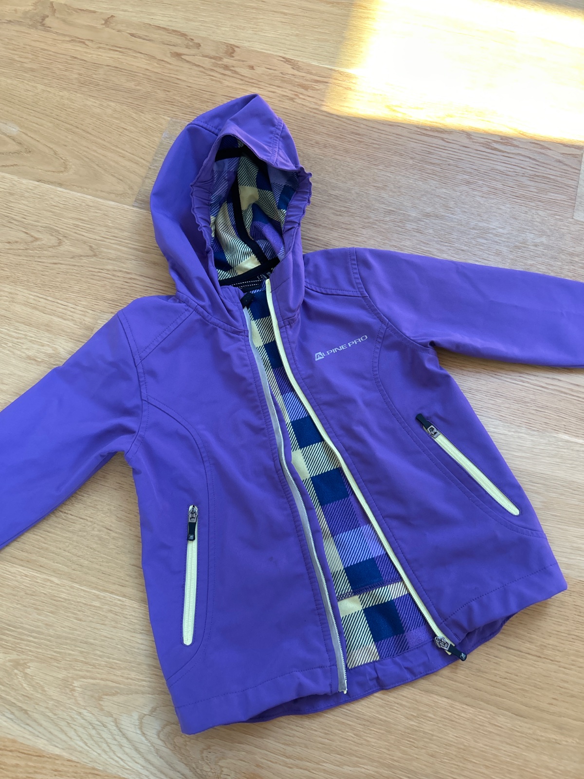 Krásna , bez poškodení. Podšitá, dolu sťahovanie, predlžený strih, vzadu a na zipse reflexný prvok. Velkost 116/122.