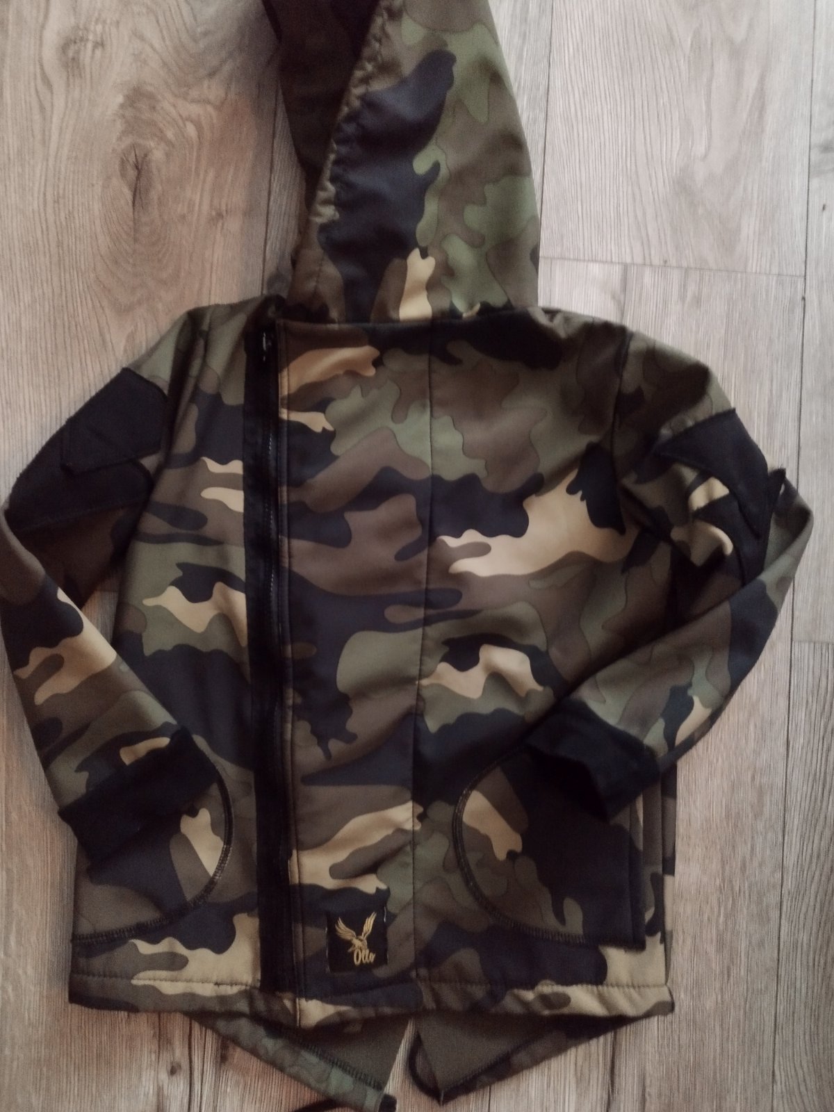 Málo nosená..vo veľmi dobrom stave..bola k nej aj kapucňa,ale tú už nemáme..je to taká nepremokavá bunda,trocha zateplená..veľkosť na štítku 8,ale my sme nosili vo veku 5-6 rokov..