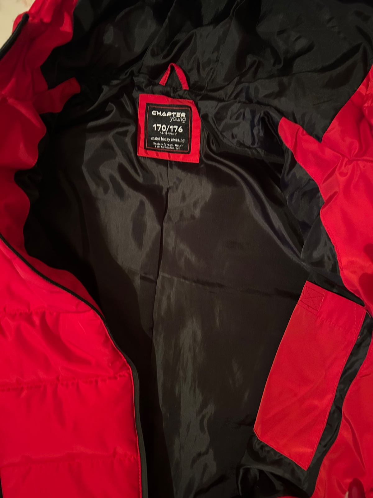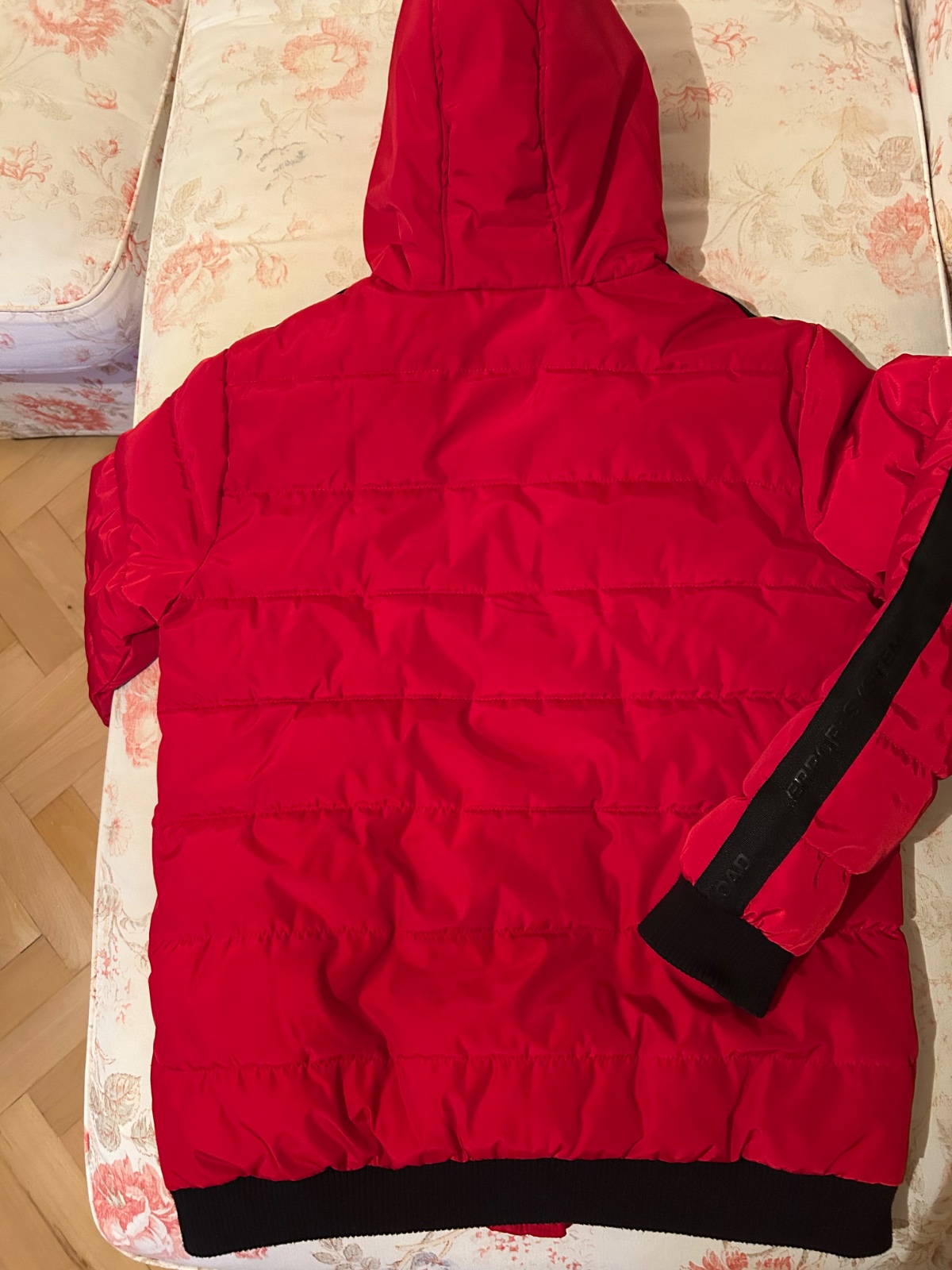 Bunda bola používaná, ale je zachovalá, má len trošku ošúchaný zips - zobrazené na druhej fotke. Iné poškodenia nemá. Rozmery: šírka pod pazuchou 54cm, dĺžka rukáva od ramena 63cm a dĺžka bundy 66cm.