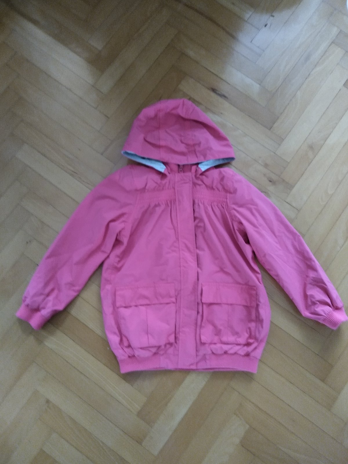 Farba nieco medzi cervenou a tehlovou. Veľkosť písaná 140, ale uvádzam 134, lebo nam uz bols mendia a nestihli sme vynosit