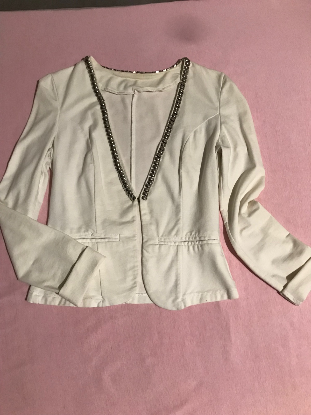 Sako len mi stojí odložené. Veľmi príjemý bavlnený materiál, žiadne žmolky keďže materiál je kvalitný.Na lakti malinká škvrna taká bodka, myslím že bolo dlho odložené od toho, Cenu prispôsobím, treba oprať, ja nestíham aj tak si každý potom operie v čom má rád