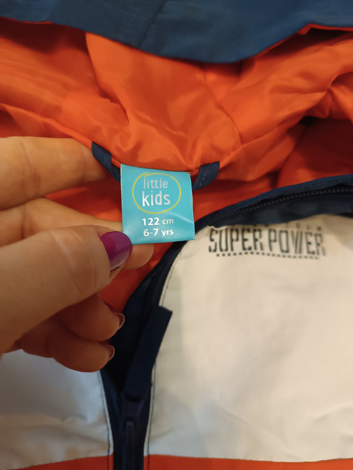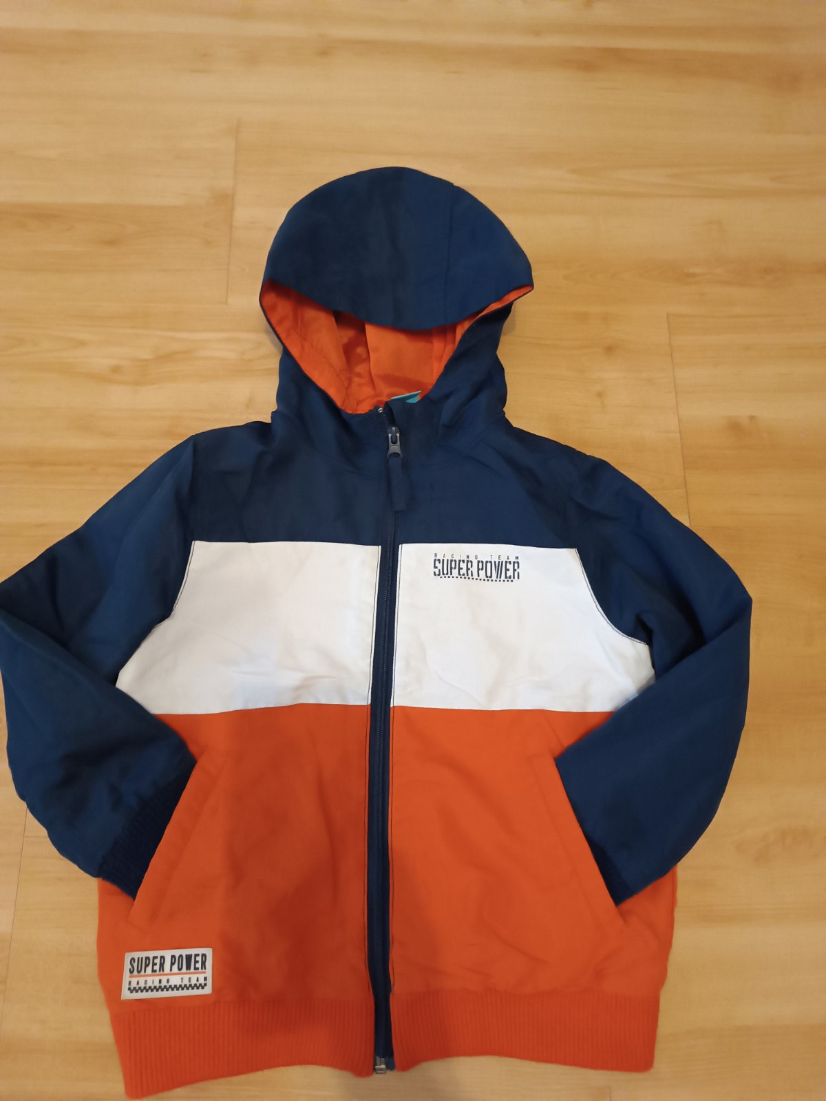 nadst11/25i oranzovej farby,Bezny noseny stav be vyblednutia,dier ci flakov,odtrhnute niesto pri pudku treba zast v sve,kapucna sa odopnut,farba je pestrejsia sirka41 dlzka48 rukav51