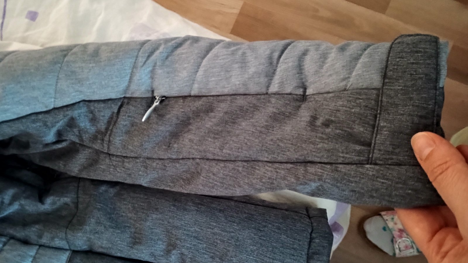 Raz oblečená v top stave. Farebná sivo - svetlo ružová kombinácia.
