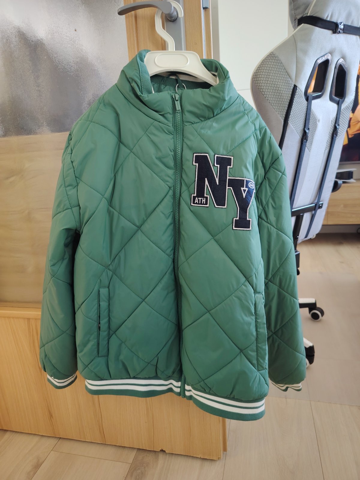 Chlapcenska Talianska prechodna bundicka ALCOTT.Povodna PC 62,90 EUR. Bundicka je tensie futrovana - skor na miernejsiu zimu,alebo prechodna ,material akoby pogumovany v sivo zelenkavej farbe,bez ...