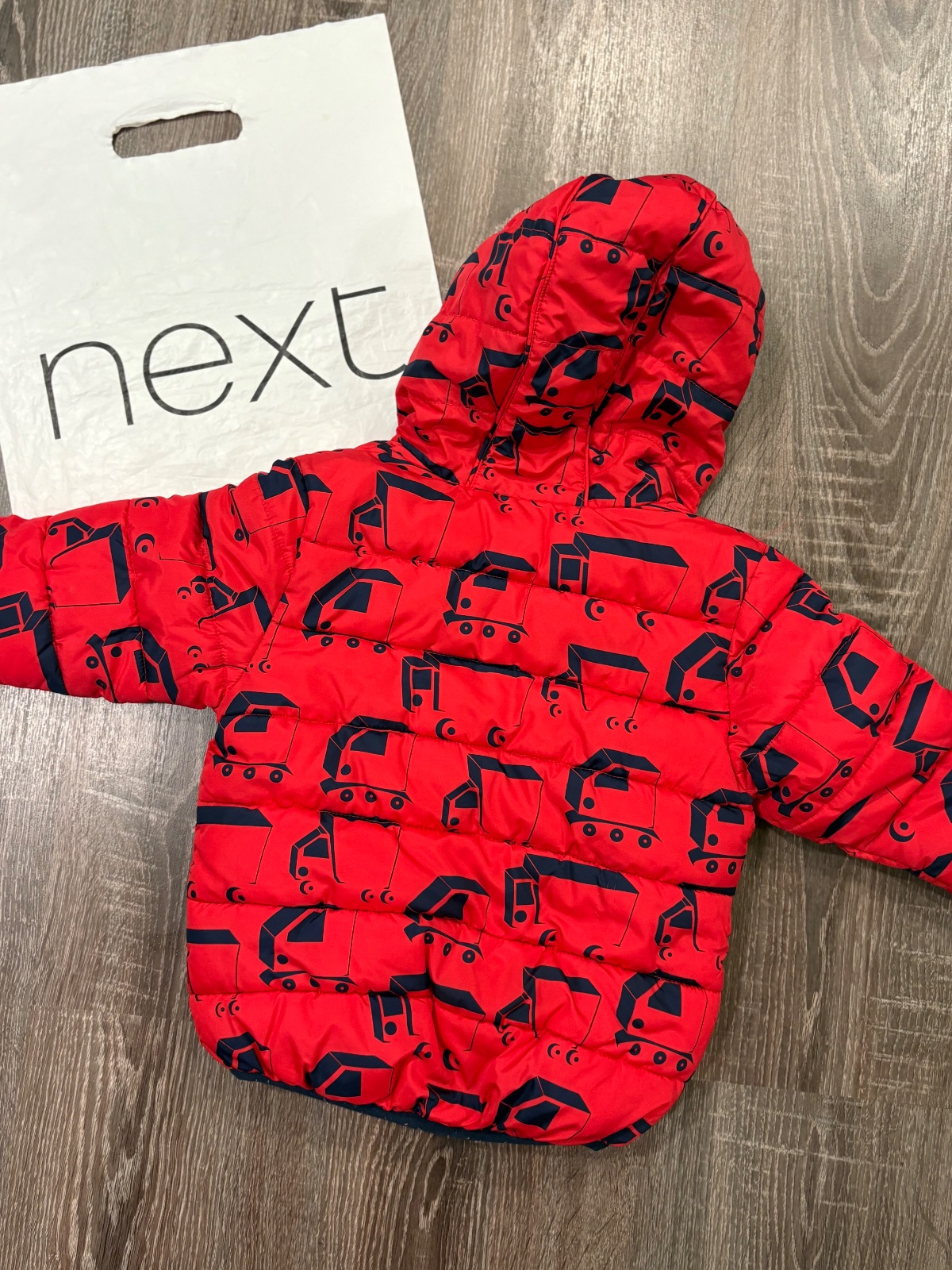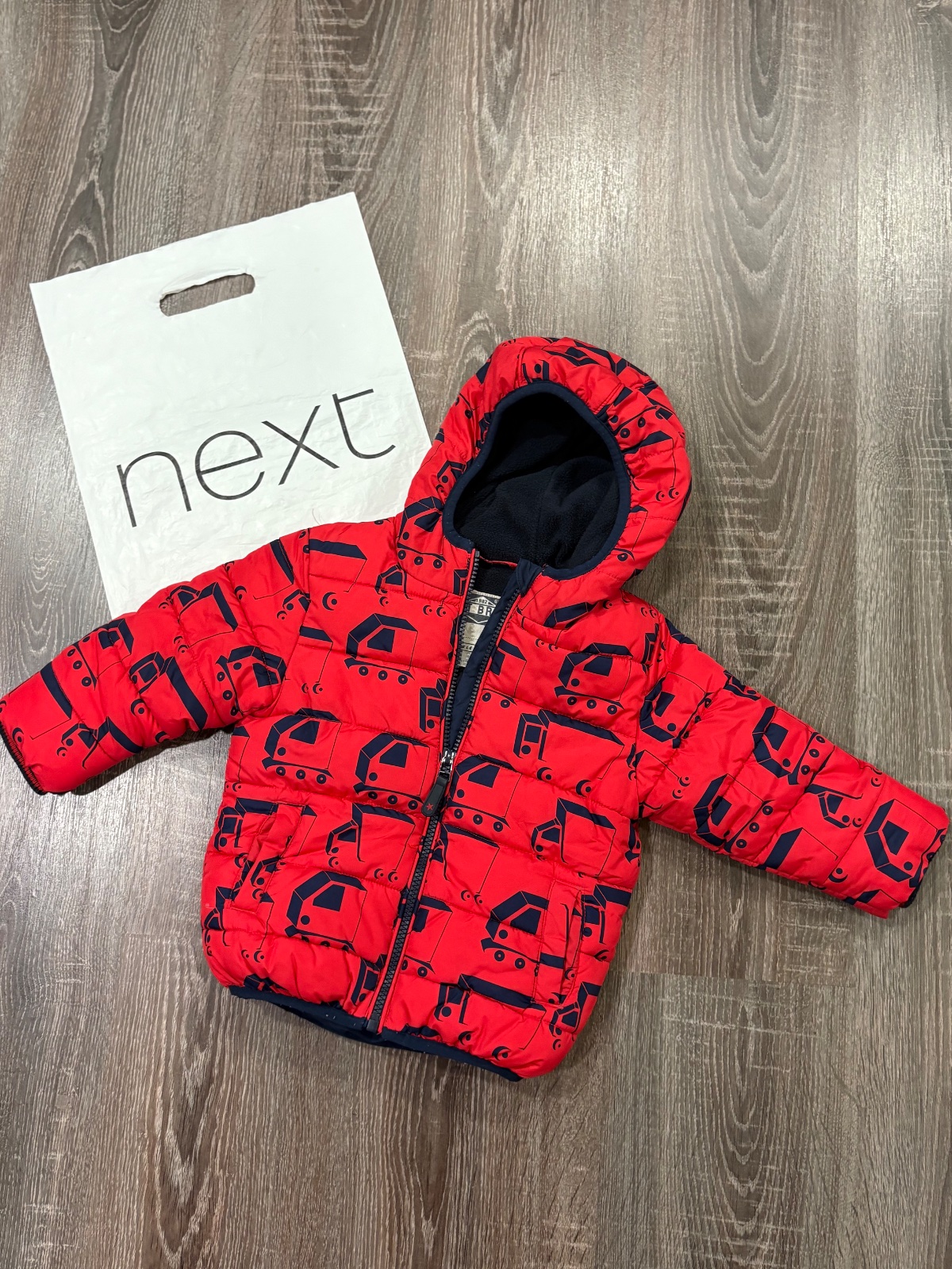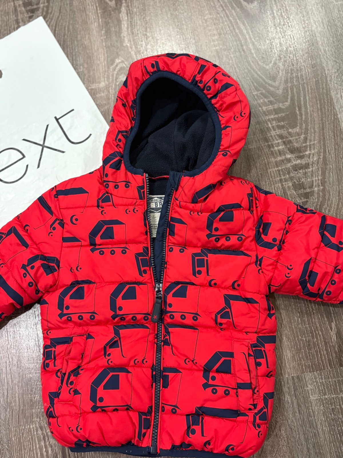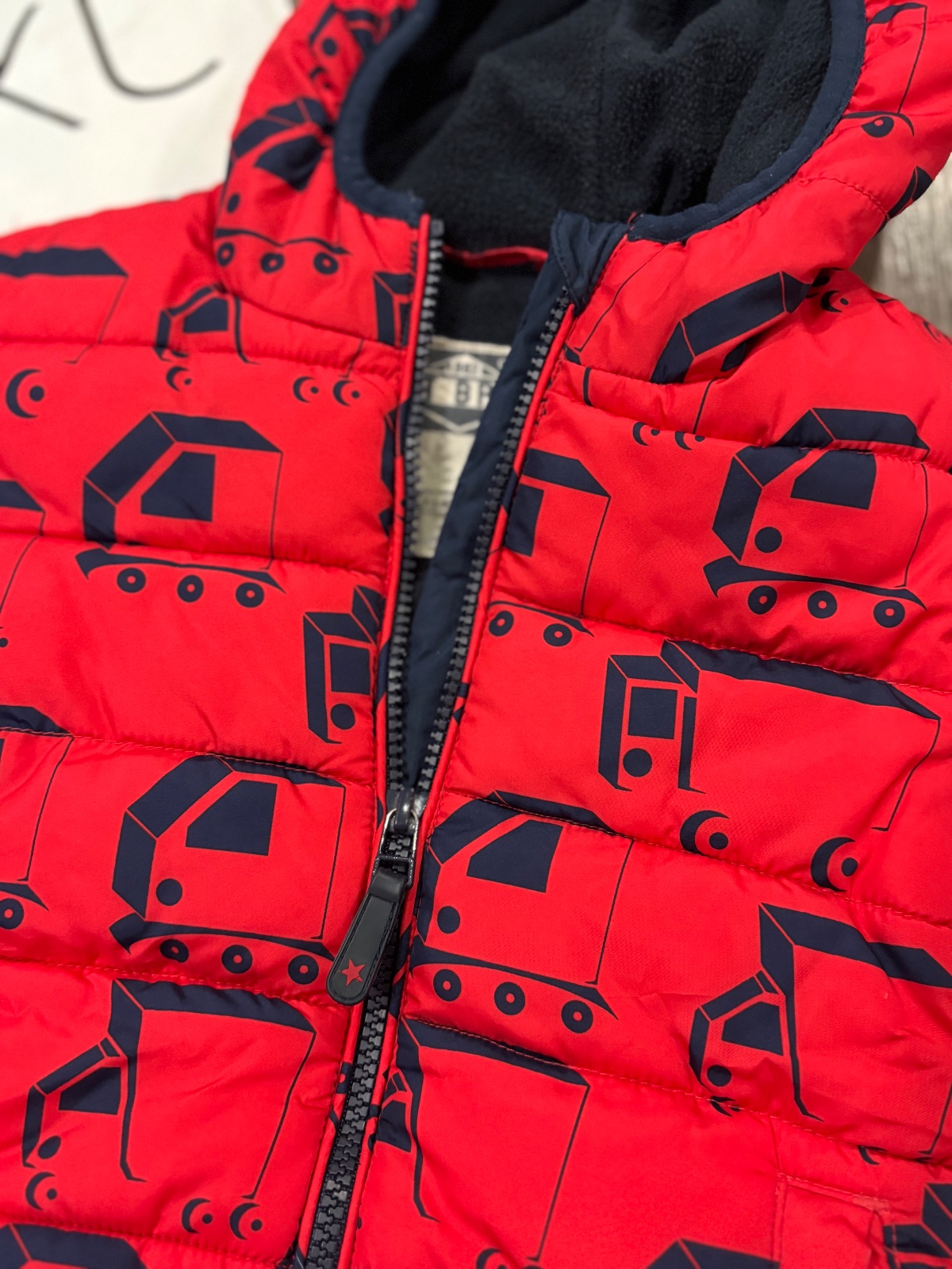 21.NEXT krasna zimna vetrovka s autíckami, vo velkosti 12-18 mesiacov, 86, ma kapucnu a 2 vrecka , super stav, len pri patente mini zmolky...dlžka je 41cm, dlžka rukava od krku je 38cm a vo vnutri je aj patent aby cez rukav neprefukalo, širka v podpazuší je cca 32x2cm
