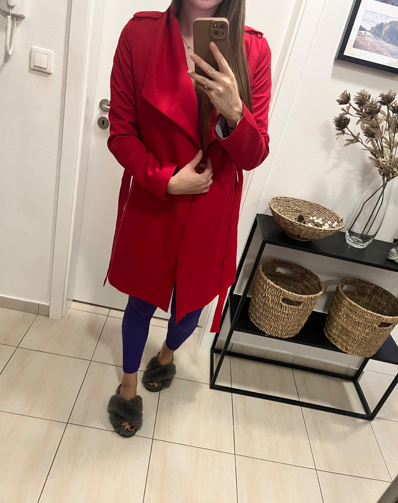 Predám dámsky červený plášť - jarnik, veľkosť 36 alebo S, značka Orsay,v bezchybnom stave, jedenkrát oblečený