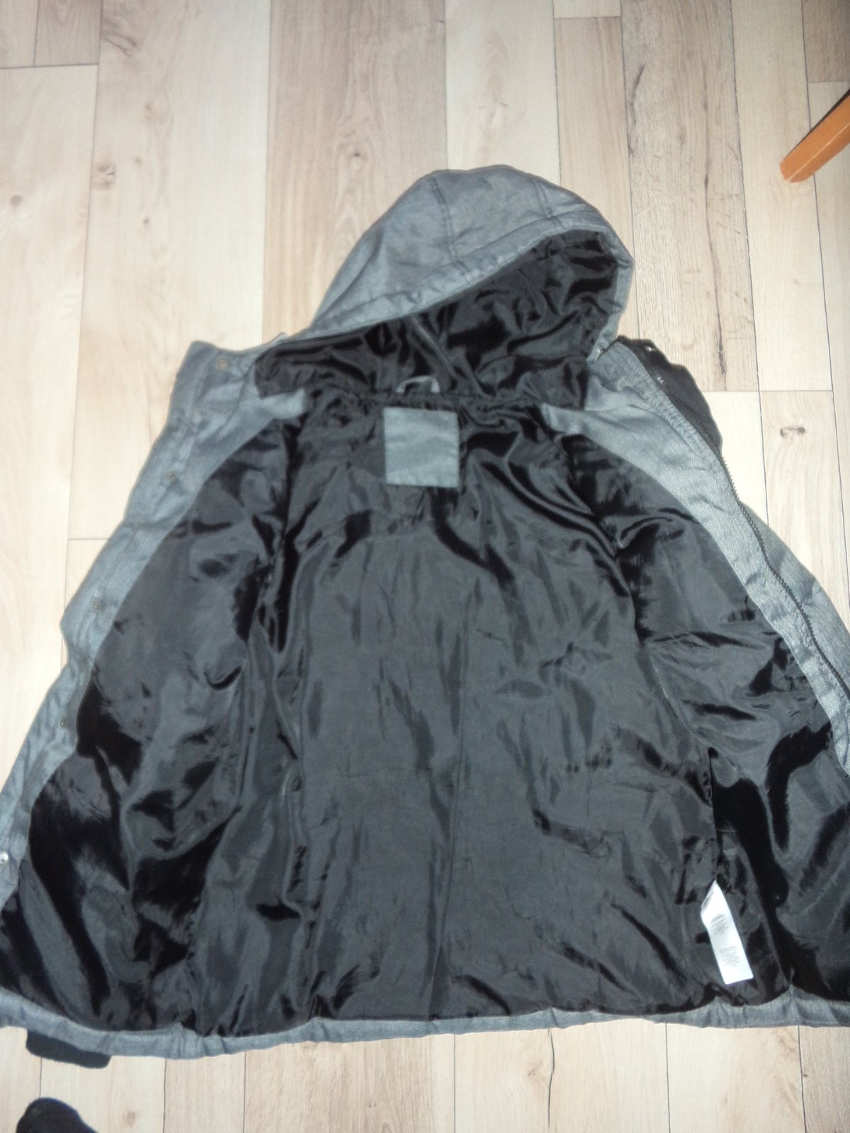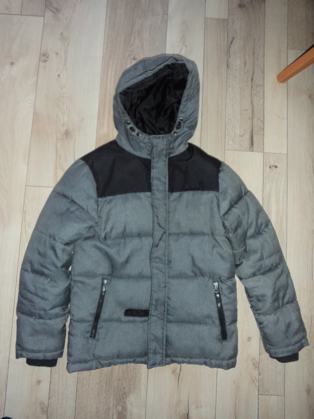 v super stave, oblečená zopárkrát starším synom, rukávy sú podšité šušťákovou látkou, aby nepremokli, bunda je do pol chrbta vyteplená flísom, dĺžka je 60 cm, šírka je 49 cm x 2 a rukáv od krku je ...
