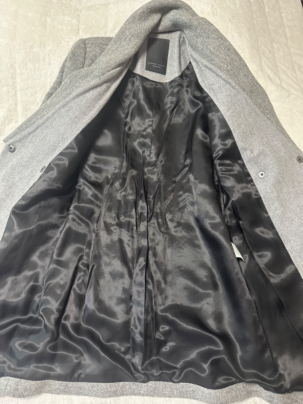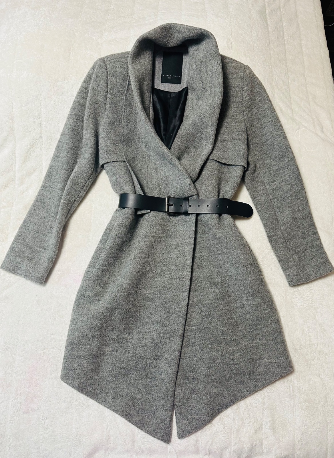 Asymetrický sivý kabát zn. Pietro Filipi originál