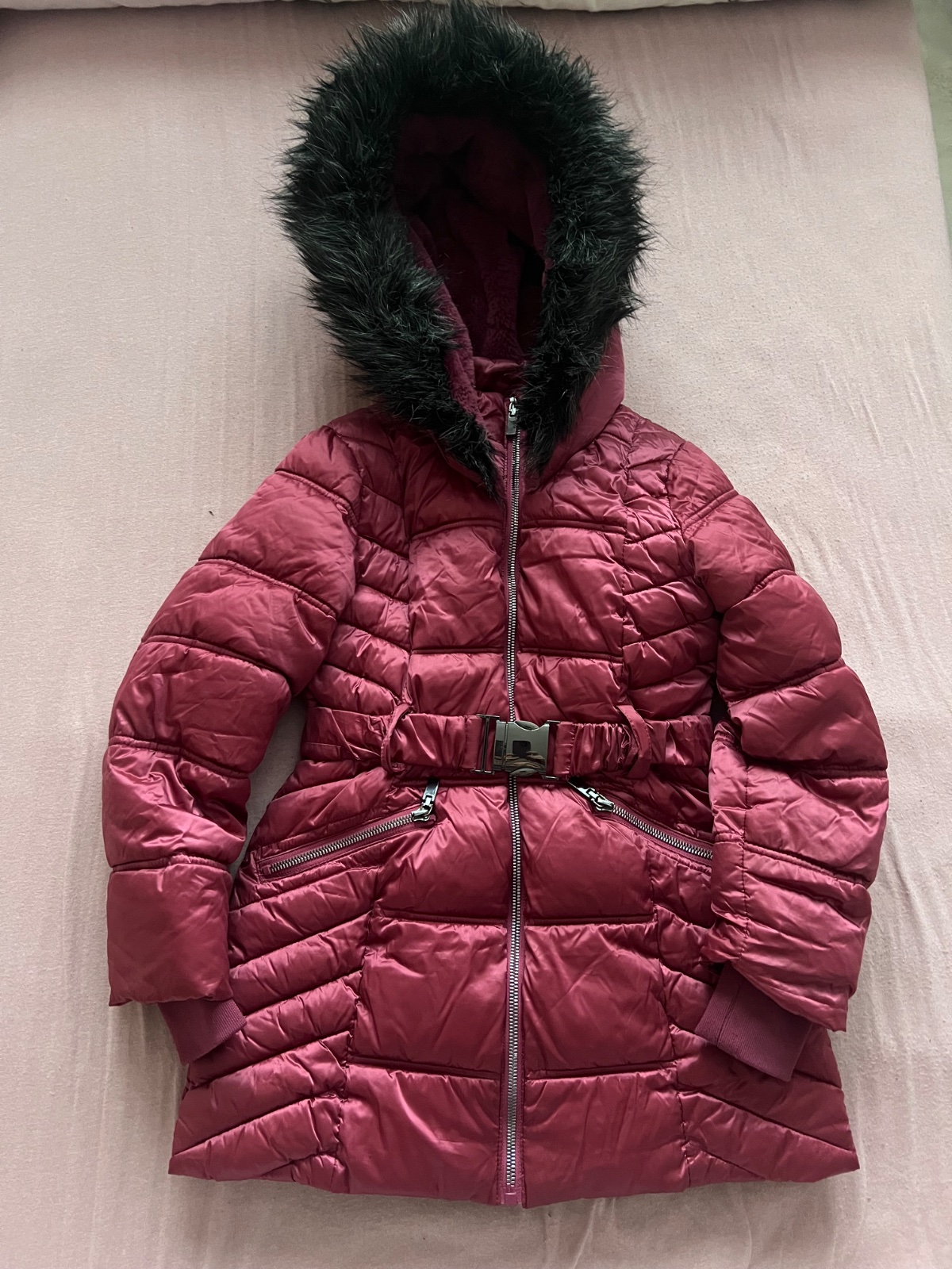 Tepla zimna bunda v super stave bez poskodeni. Pise velkost 8-9 ale je trochu uzsia. Opasok sa da dat prec