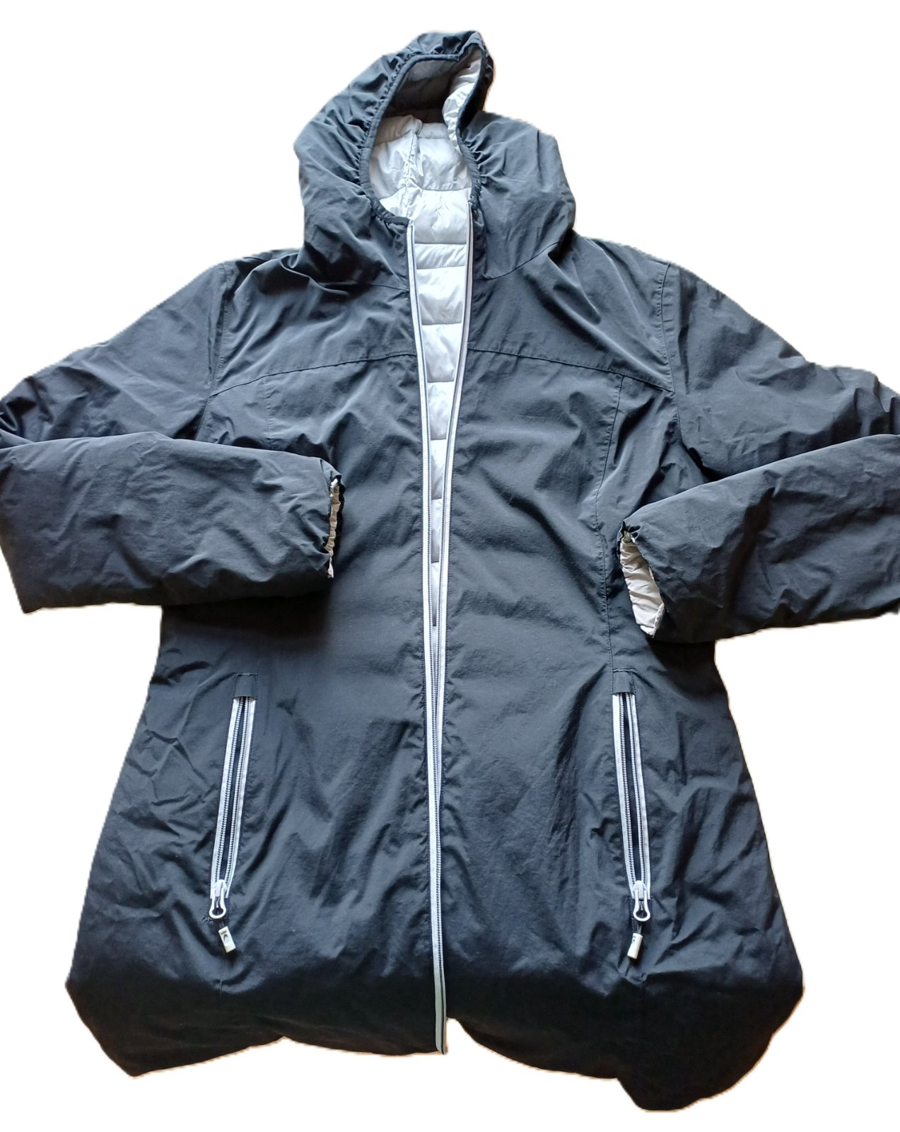 Predám obojstrannú zimnú bundu zn. HEAD, veľkosť 38 (M). Čierna strana vetrovky je odolná voči vode. Strieborná strana je len do suchého počasia.