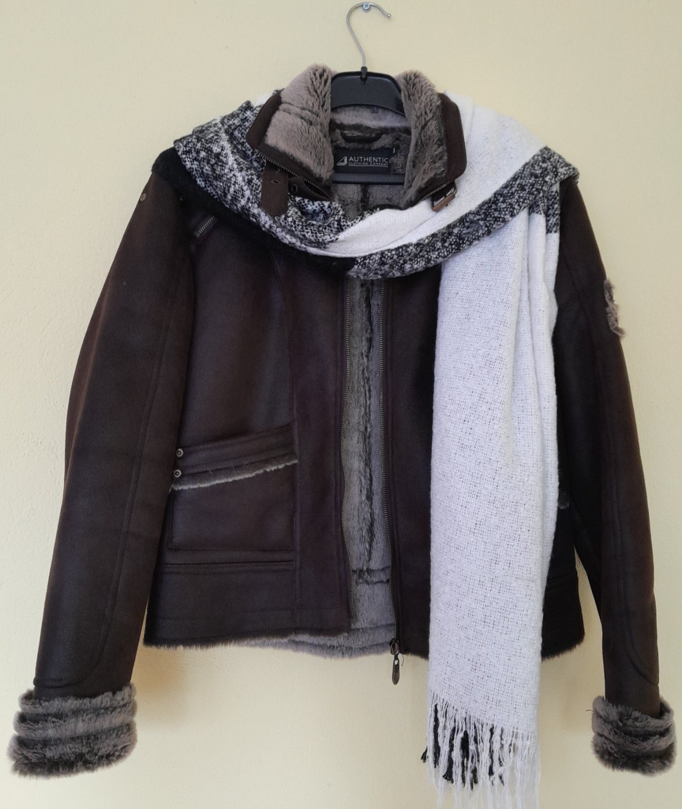 Čokoládovohnedá bunda zateplená kožušinou 100% polyester AUTENTIC v.40.Dĺžka 59 cm,rukáv 61,5 cm. Bez známok nosenia v 100% stave. Bližšie info v správe. Úhrada vopred +poštovné alebo osobne v Nitre. Dobierka NIE. Posielam slov.poštou.