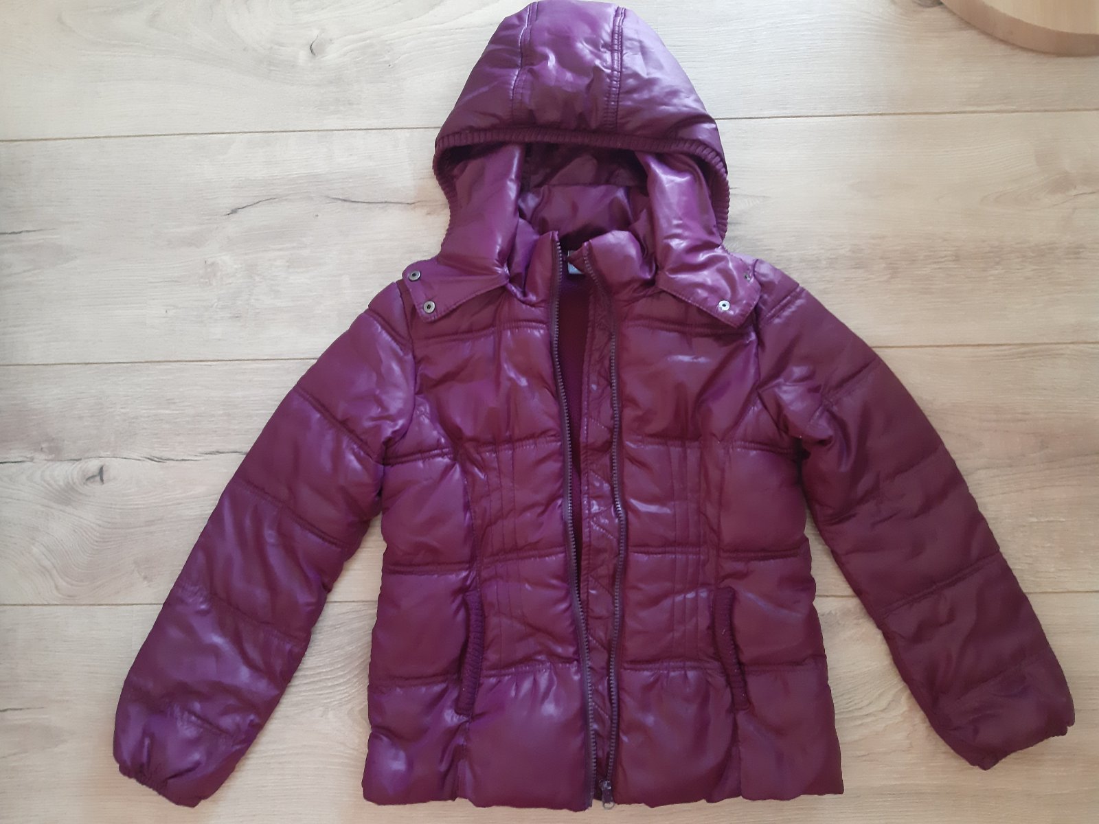 Prechodna bunda v dobrom nosenom stave. Zips funkcny, odnimatelna kapuca.