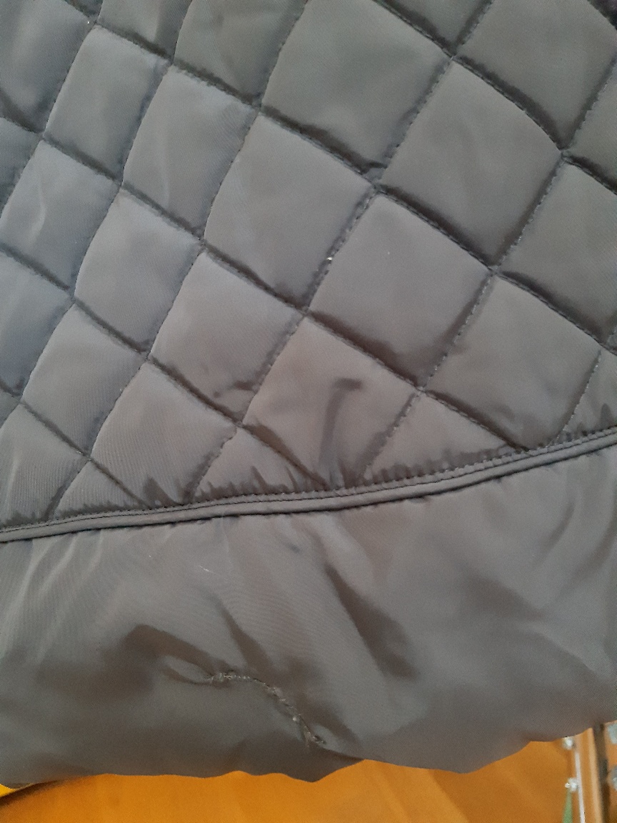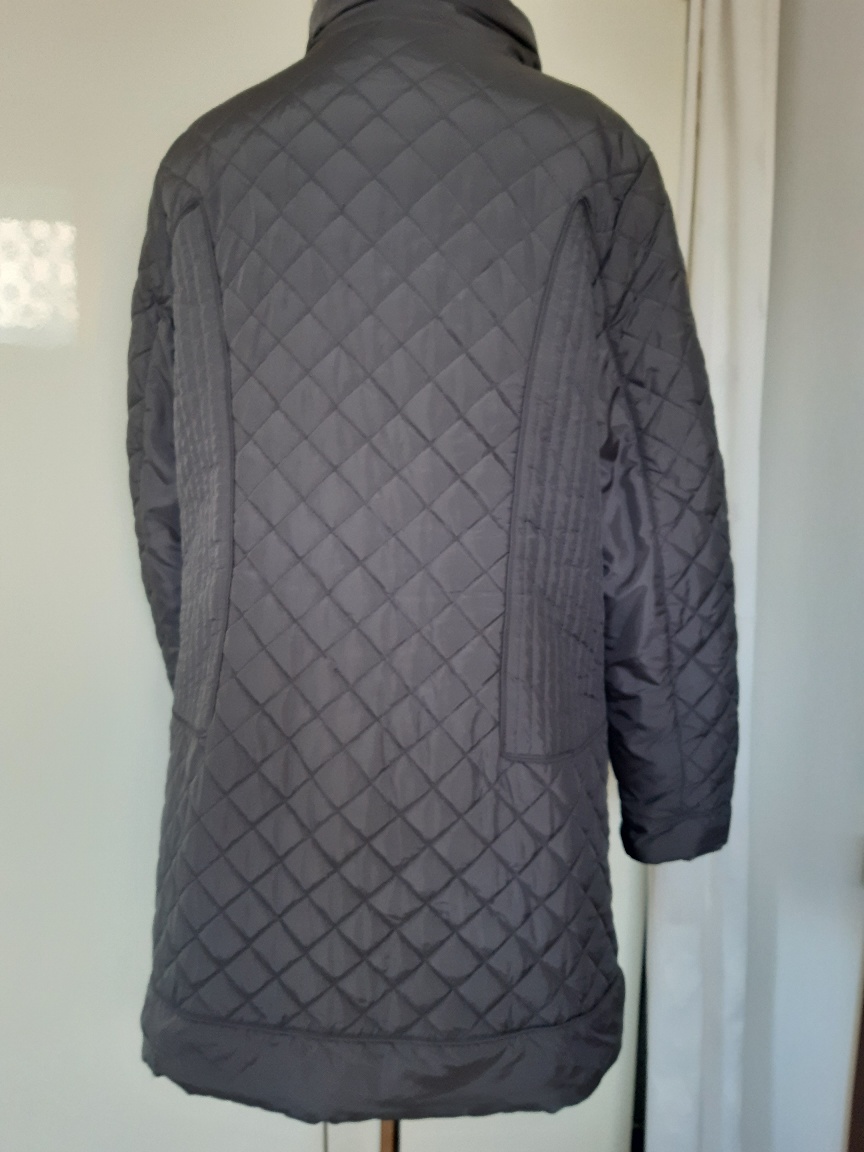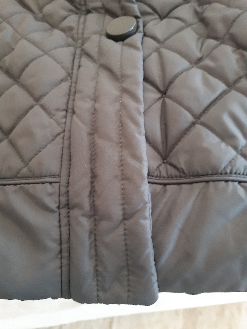 Dlhšia bunda, podobná ako kabát. Dl. 90 cm, šírka v podpáži 57x2 cm, boky 60x2 cm, dl. rukáva 64 cm. Pekne sedí na postave. Má opravu v dolnej časti,bolo zatrhnutie viď posledné foto, tiež kde sa zapína na cvoky chýba posledné ,dole zapínanie. Ináč je tam zapínanie na zips, aj cvoky, čo vyzerajú ako gombíky. Na poslednom mieste je len cvok na zapínanie, z lícnej strany nevidieť, lebo je len vo vnútri, chyba z neho jedna časť, viď foto, ale podľa mňa tam ani nemusí byť. Bunda je pekná, teplá, až na to poškodenie na dolnom okraji, na bežné nosenie ešte sa zíde, dávam nižšiu cenu.