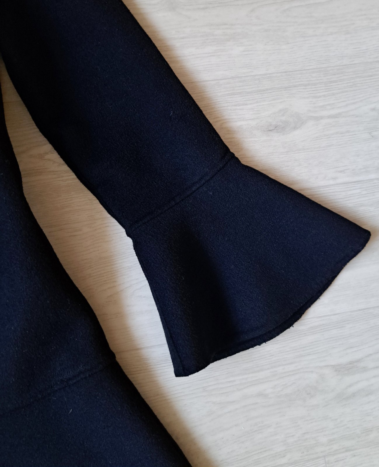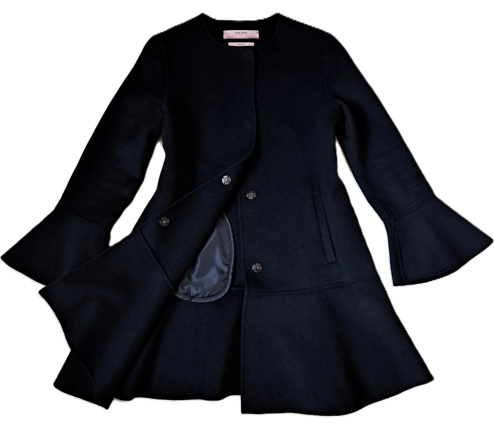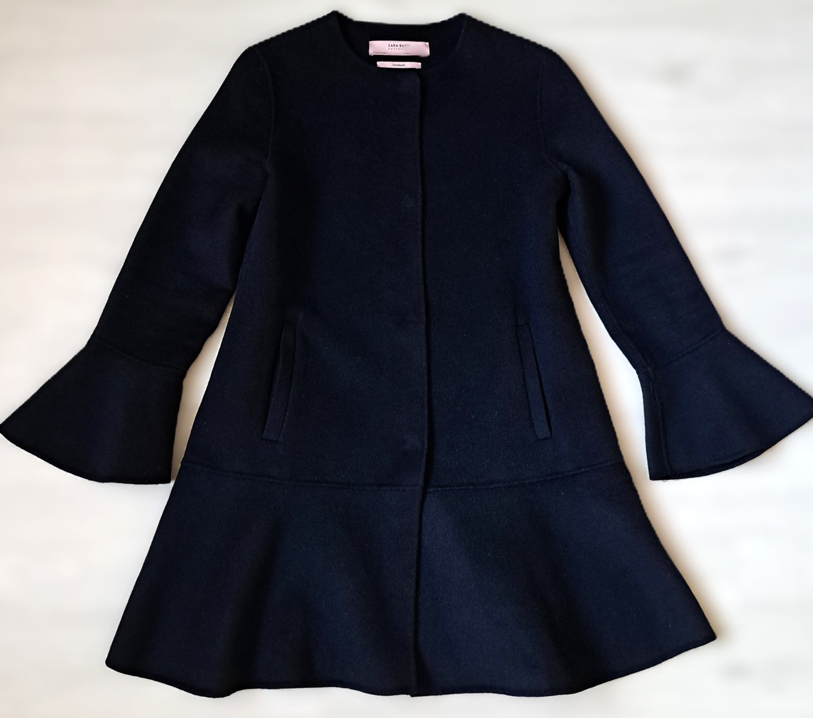 Dámsky kabát zn. Zara - nosený bol minimálne, je v super stave. Veľkosť je uvedená XS, ale sadne ako S, kľudne aj menšie M. Jedná sa o krásny, nadčasový, prechodný kabátik s mierne rozšírenými rukávmi a volánom v spodnej časti. Materiál je tenší, s podielom vlny. Na postave vyzerá skutočne úžasne.