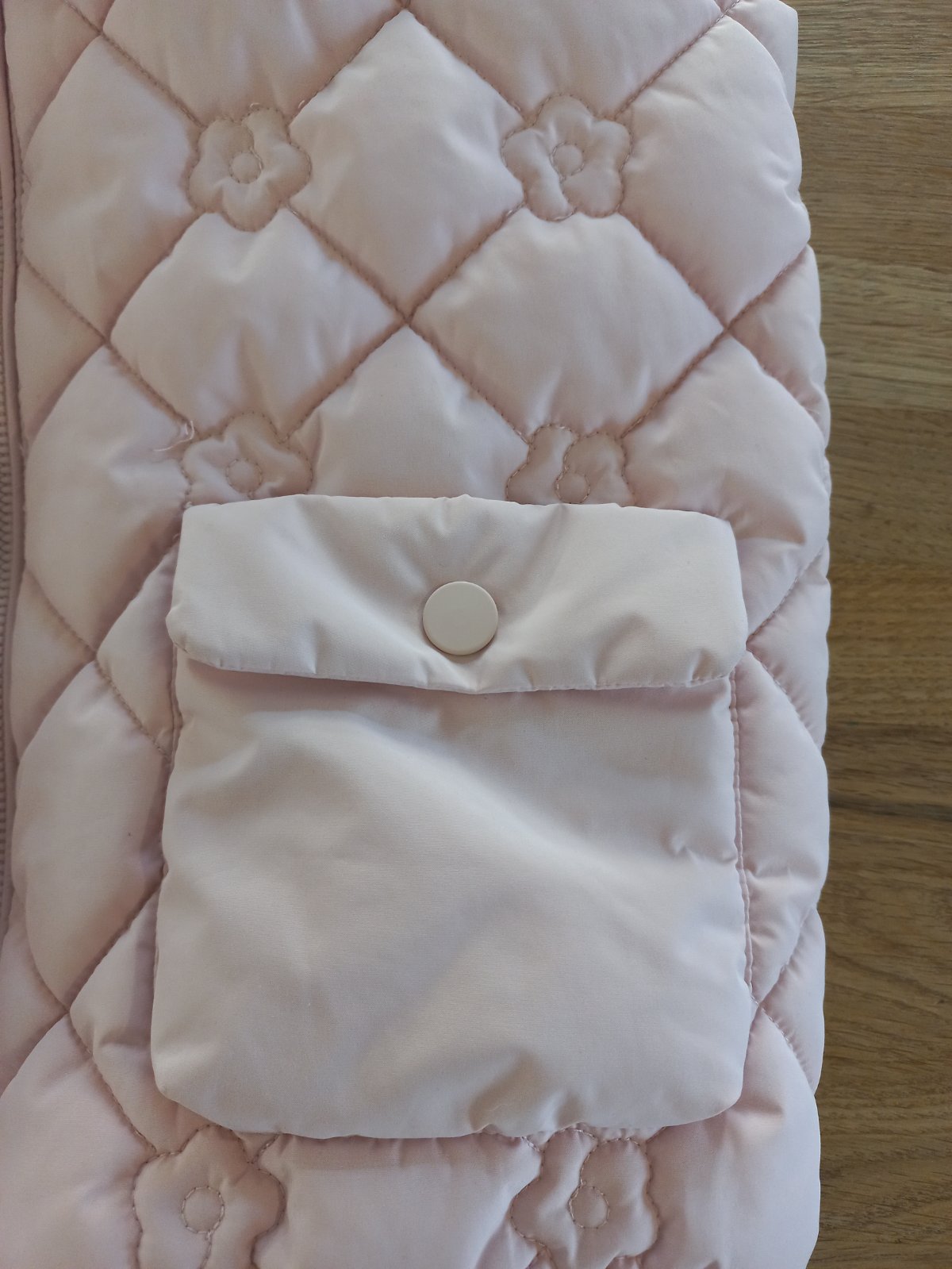 Zateplená obojstranná vesta (viď obe foto) vo veľmi dobrom nosenom stave bez poškodení. Pisanu veľkosť neviem nájsť, dĺžka vesty je 47cm.
